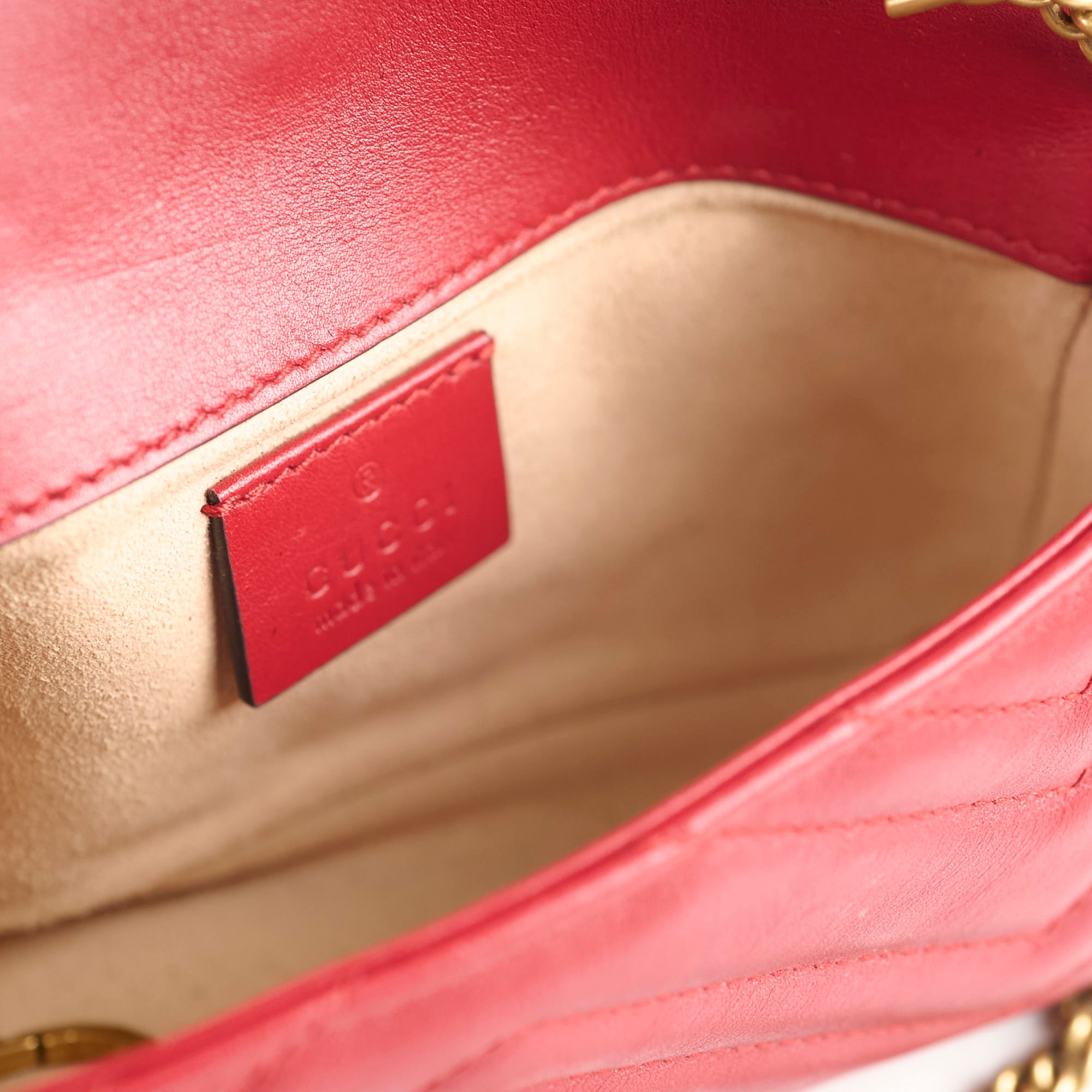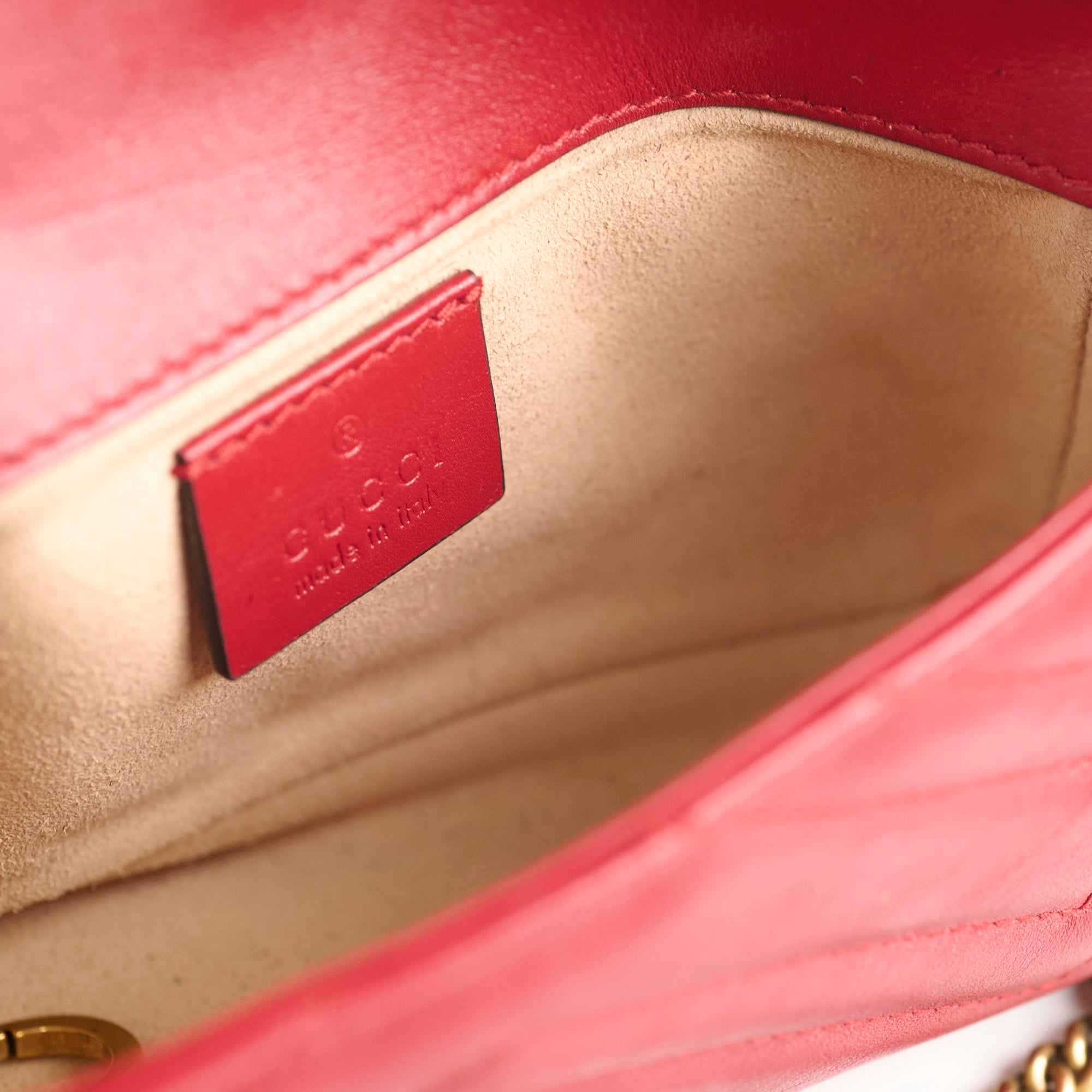 Light rubbing on front and corners, light hairline scratches on hardware, light rubbing on interior suede