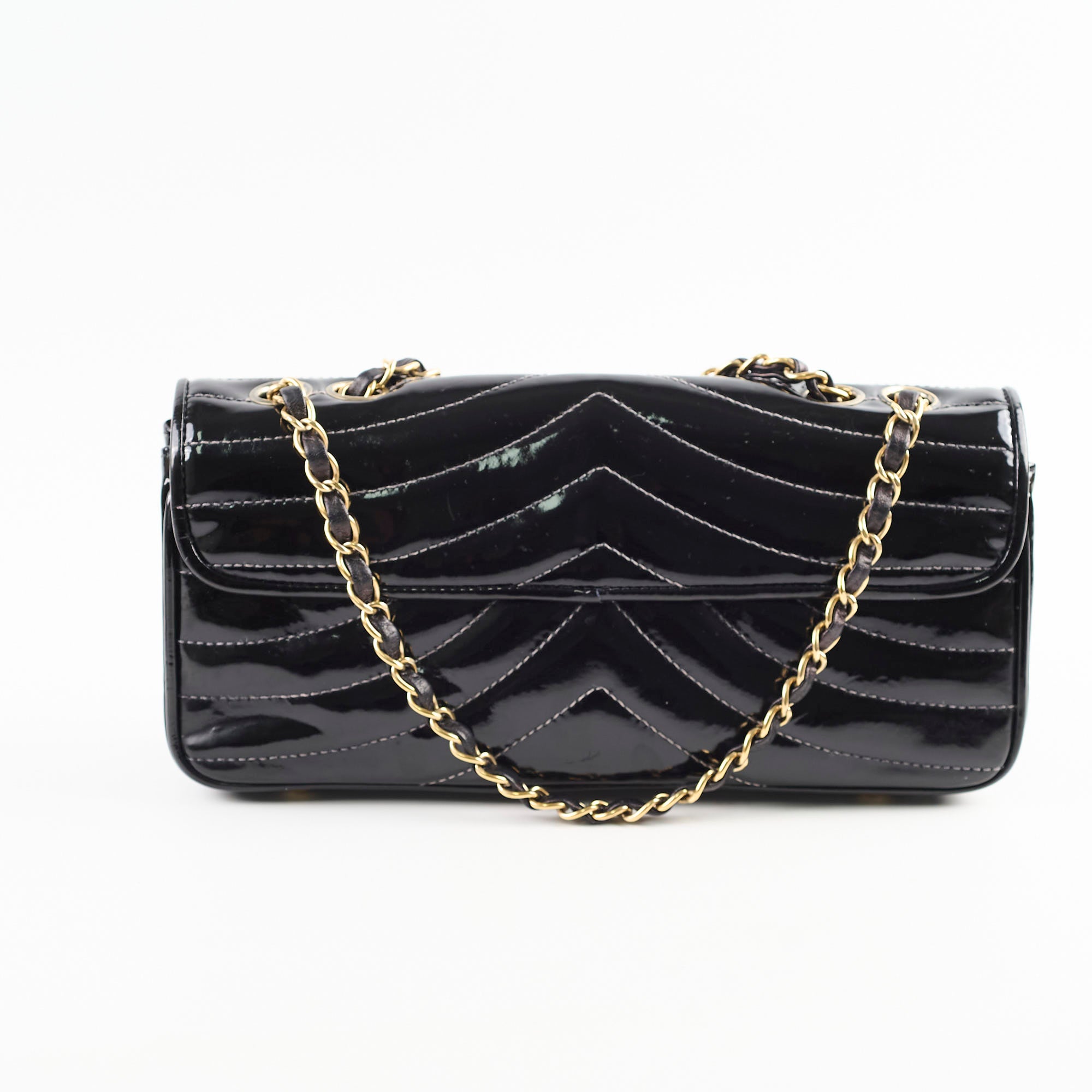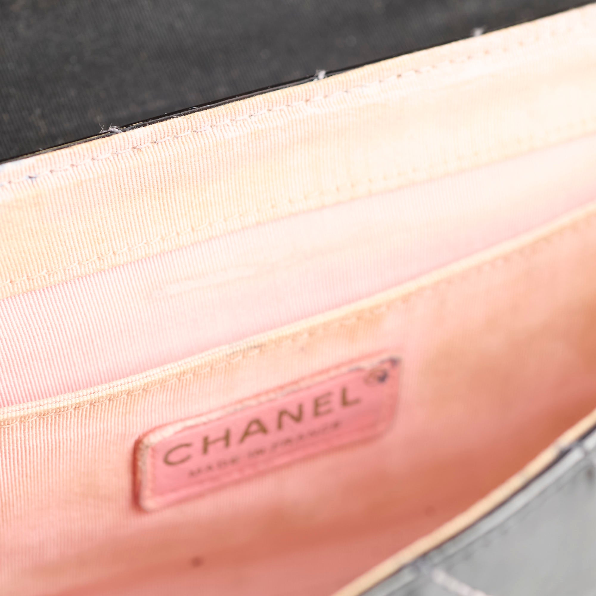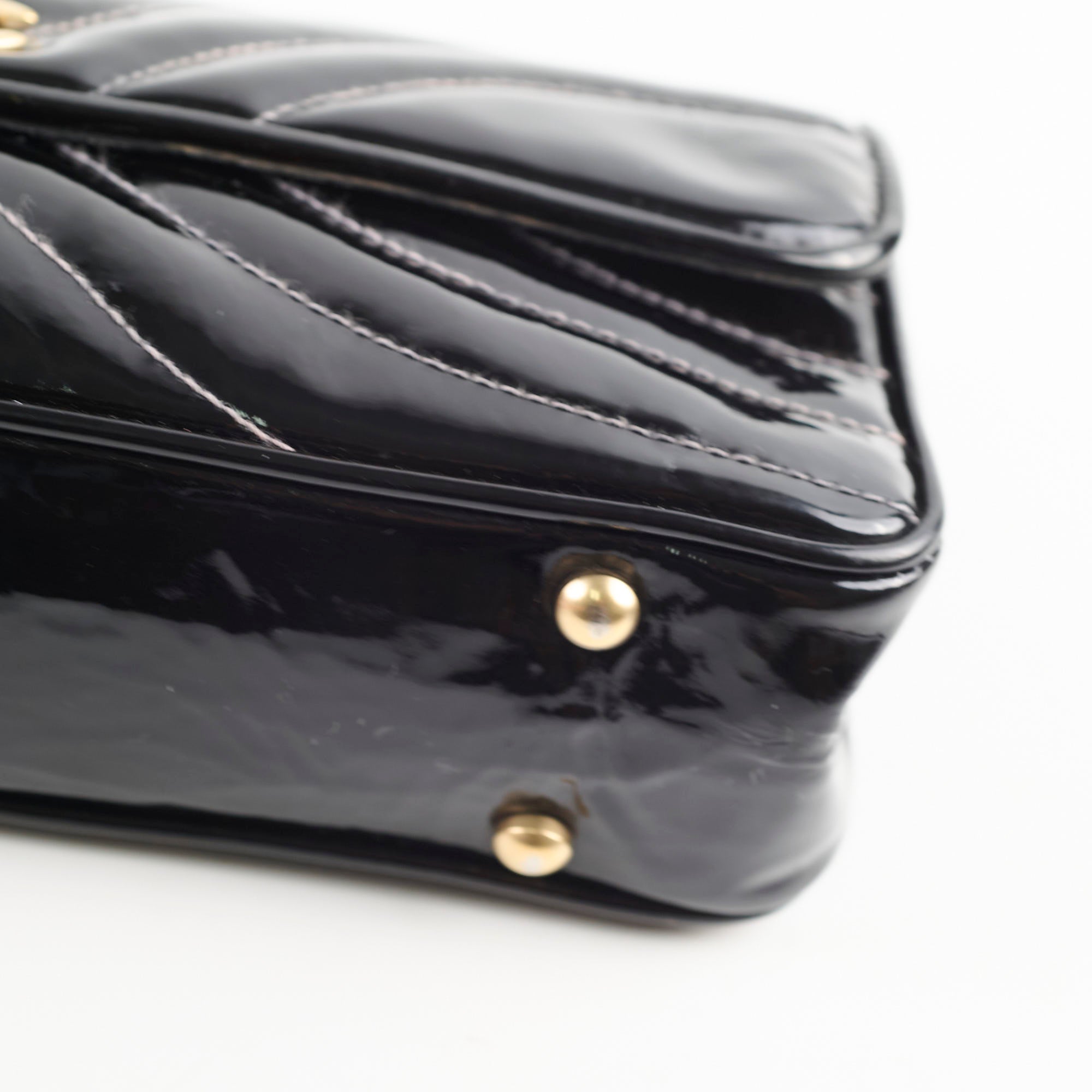Sign of wear on interior, general sign of wear, light hairline scratches and rubbing on hardware, light scratches and marks on patent