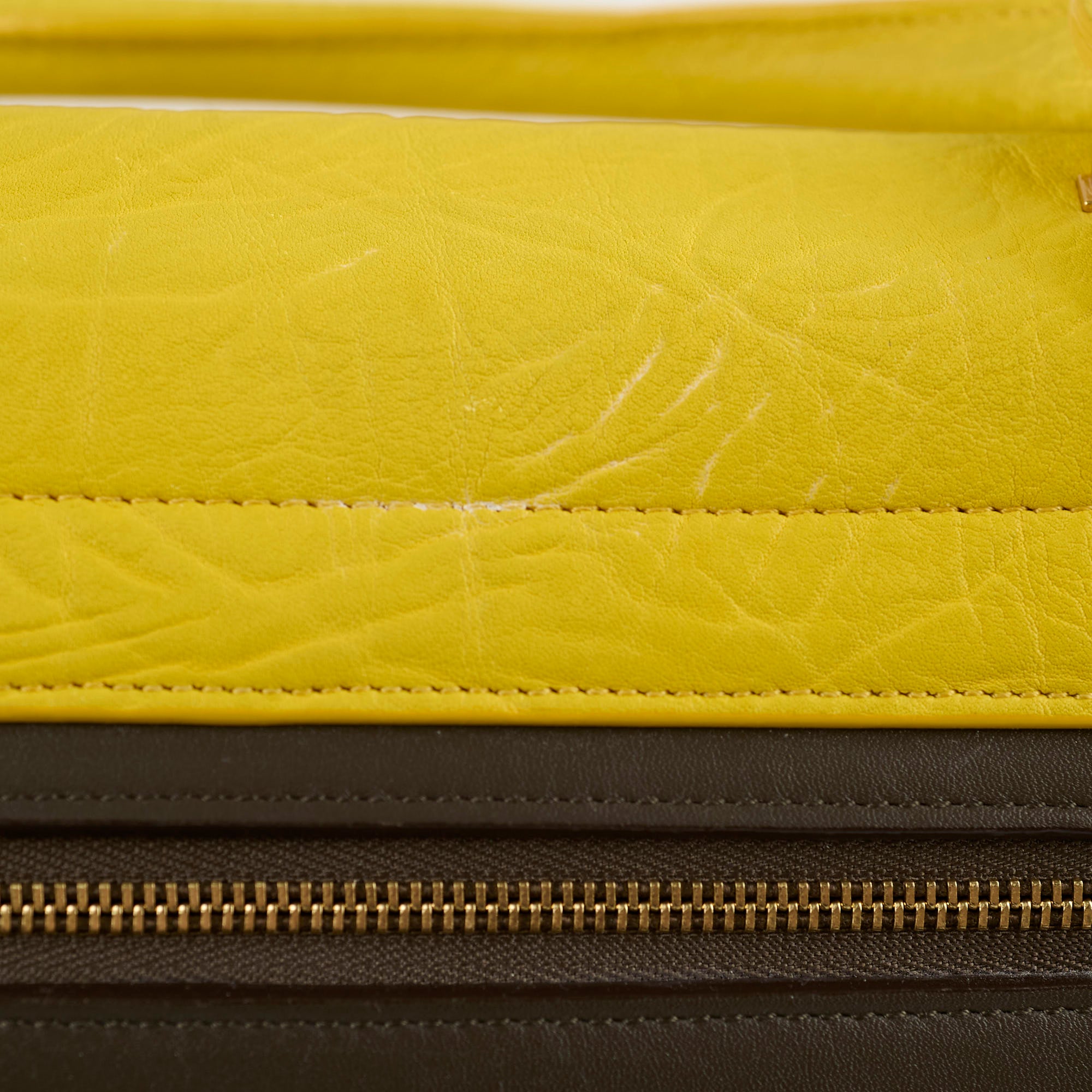 Rubbing on corners, scratches on hardware and leather, creasing on leather