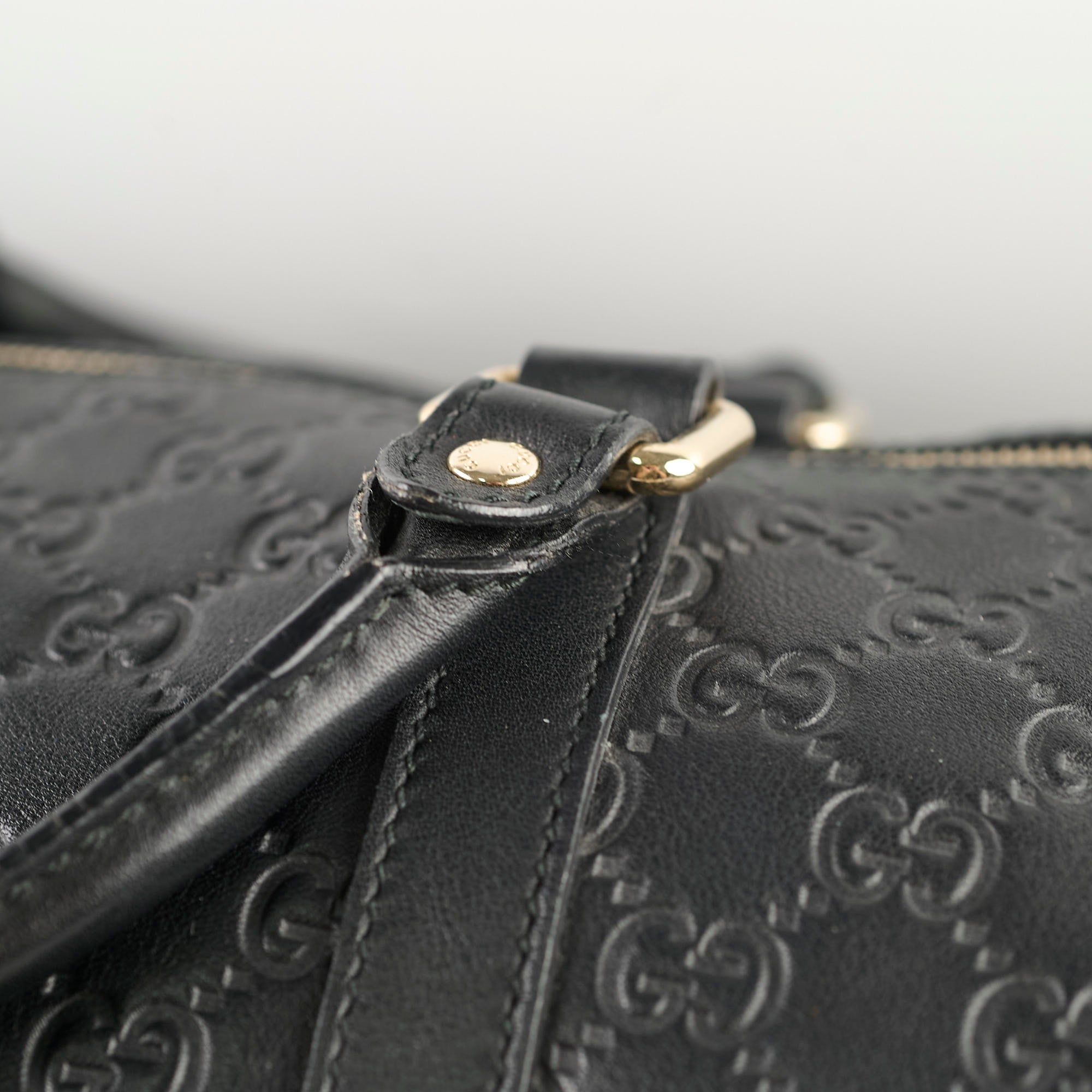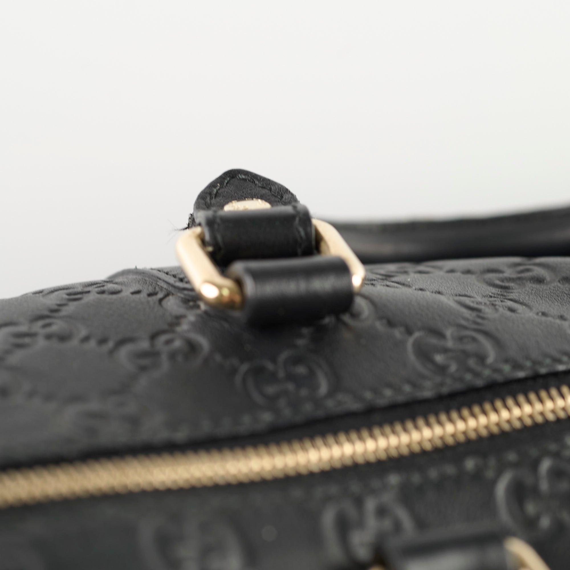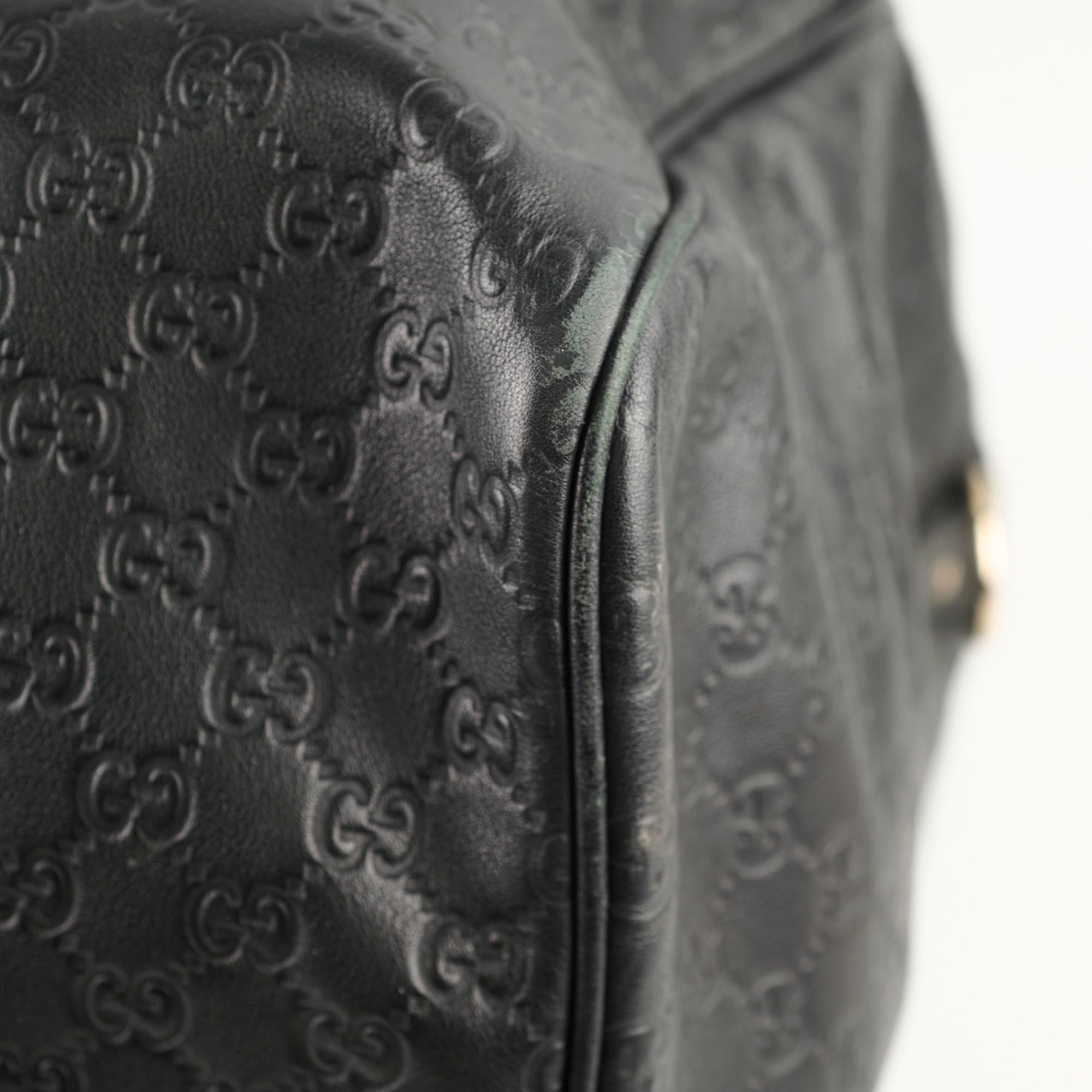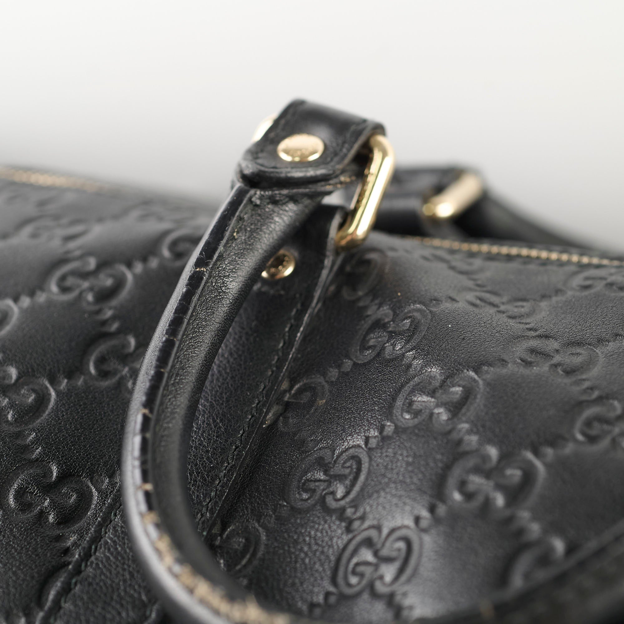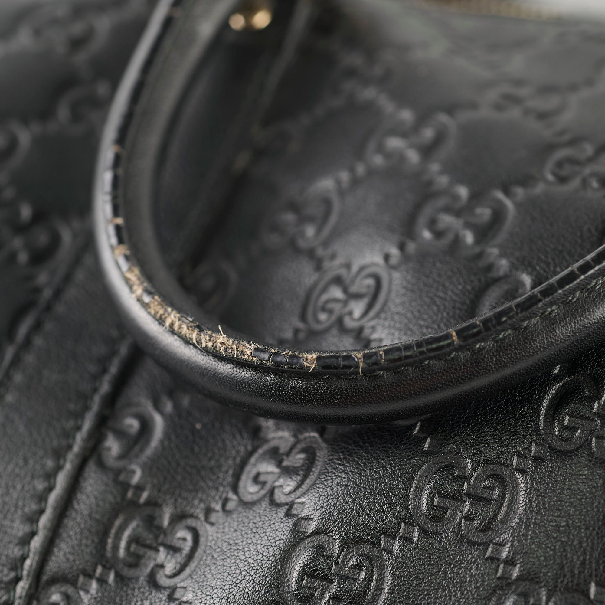 Rubbing on corners, light scratches & tarnishing on hardware, peeling/cracking on handles & strap