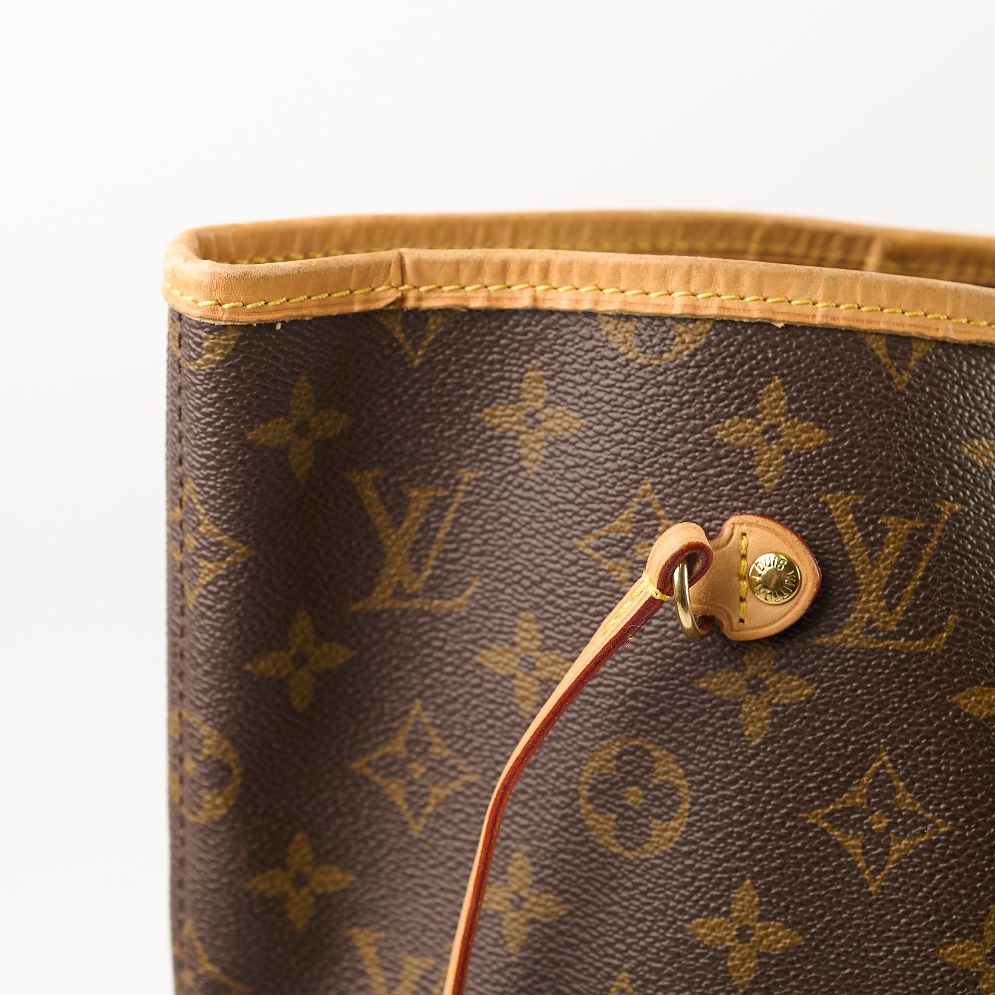 Signs on wear on vachetta handles and trim, light rubbing on corners, V.B hotstamp initials on strap base