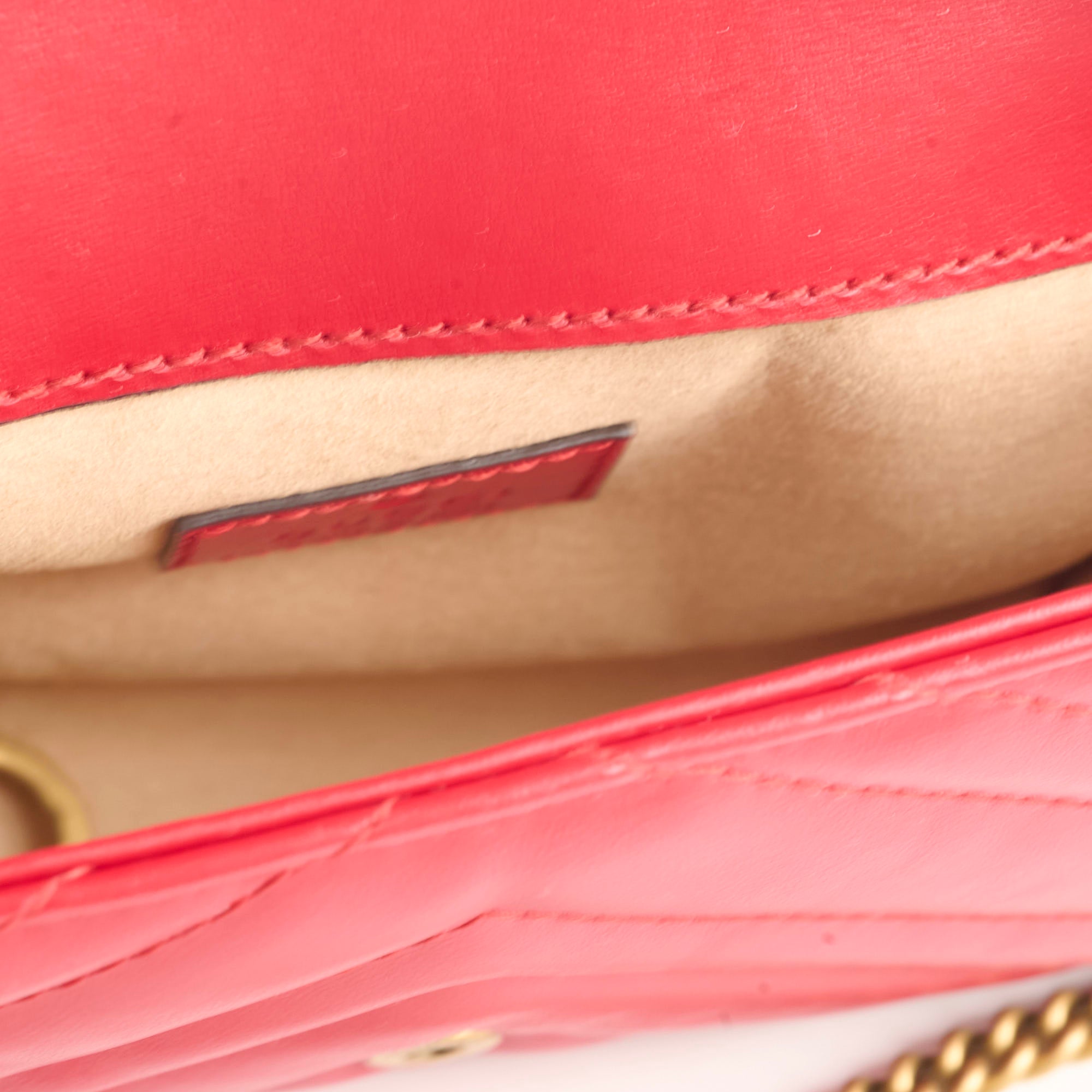 Light scratches on hardware, minor indents on leather under the flap