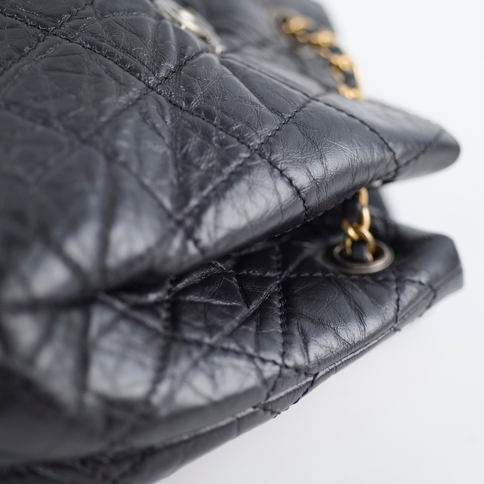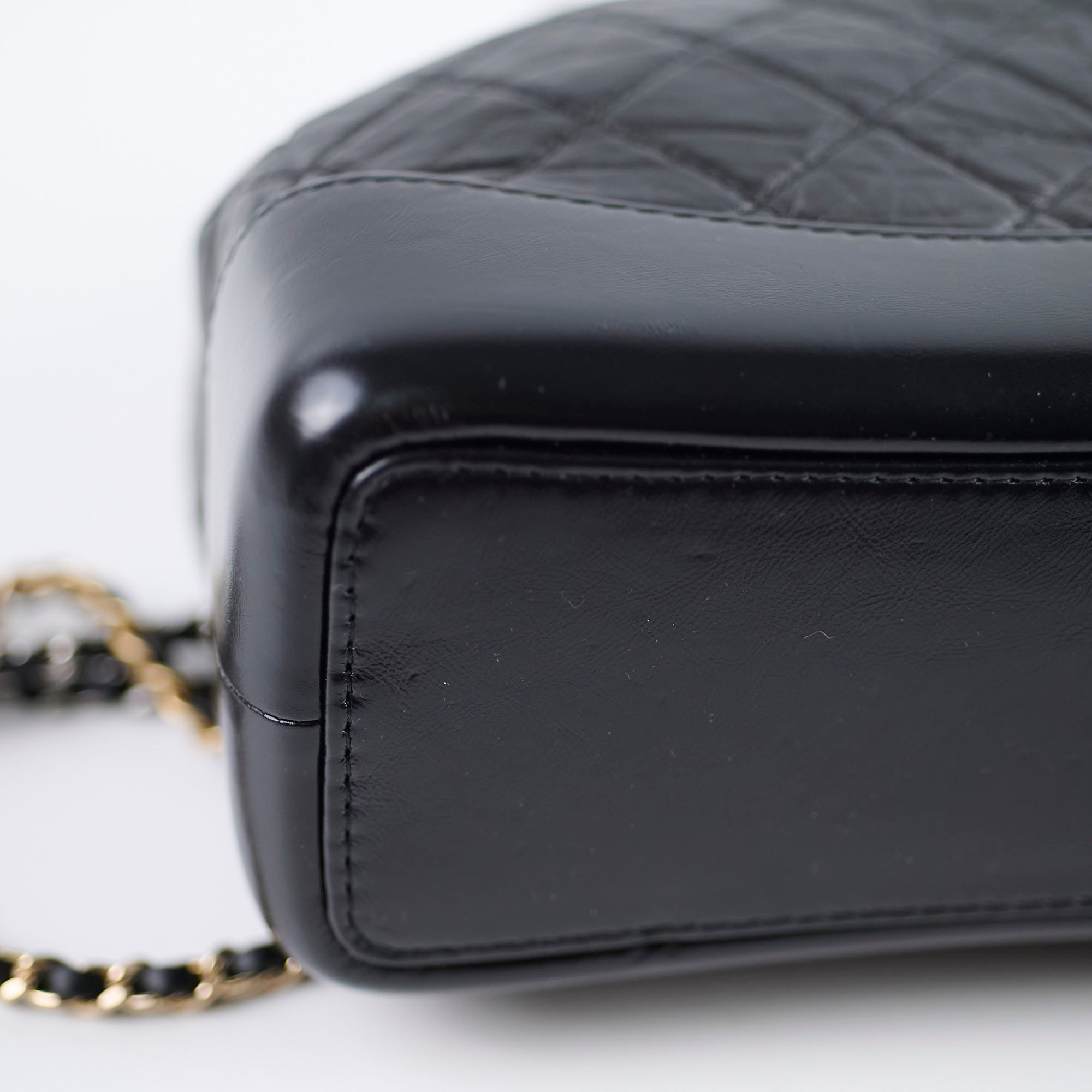Some small indentations and subtle nail marks on the base leather
