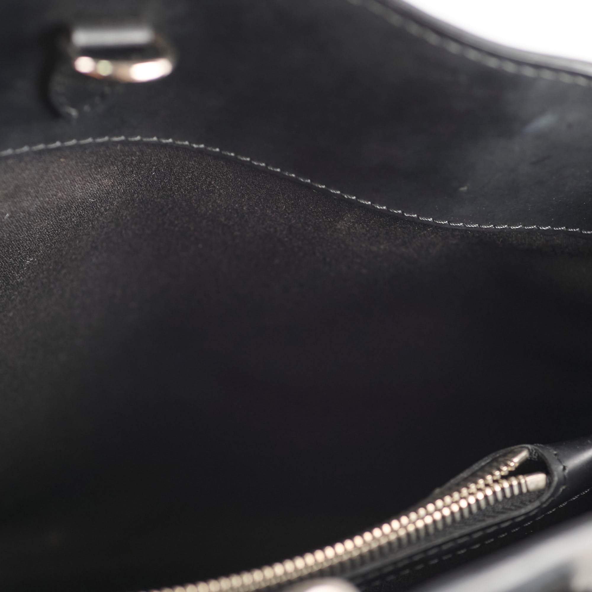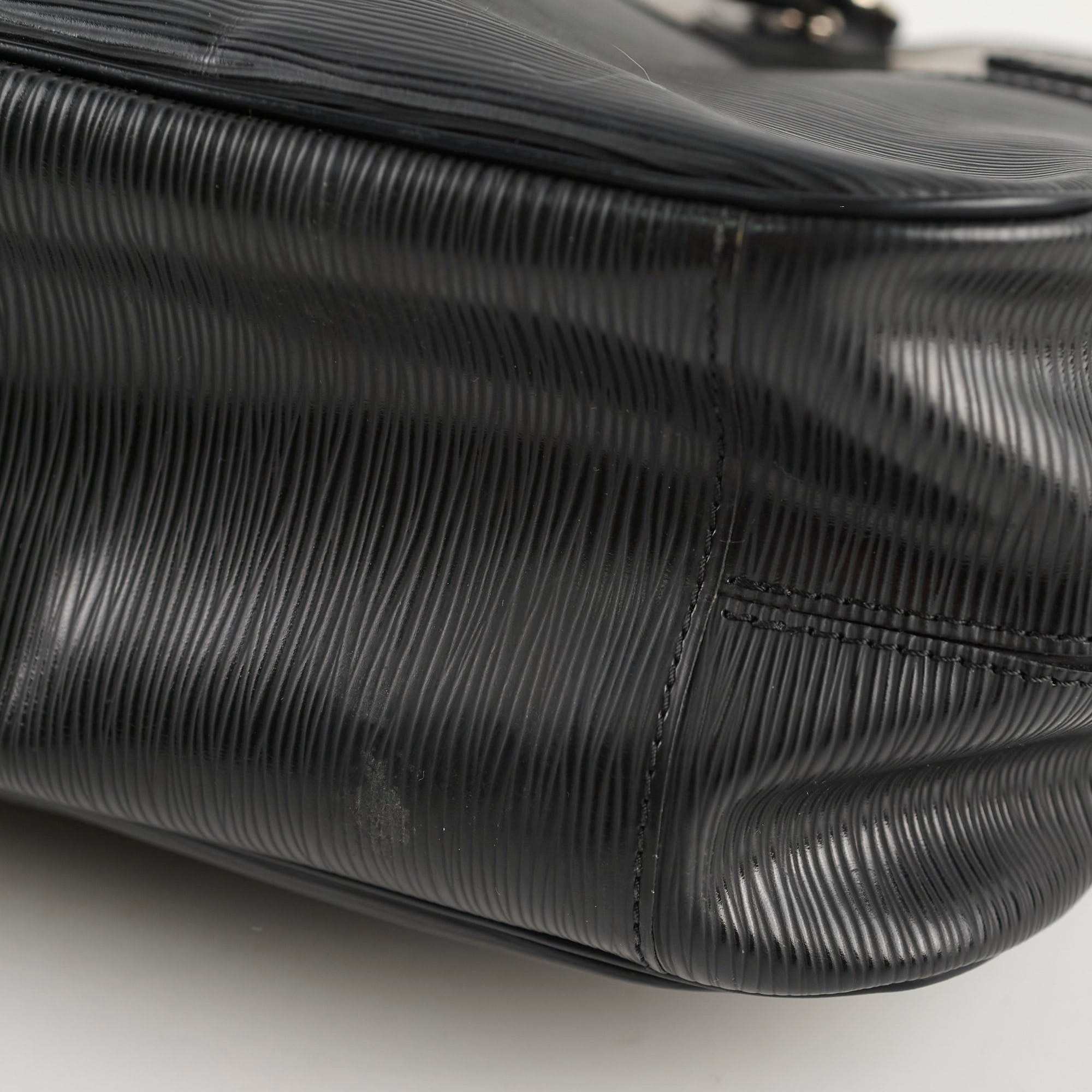 Creasing on sides and leather, scratches on hardware and leather, stains at the bottom and interior leather