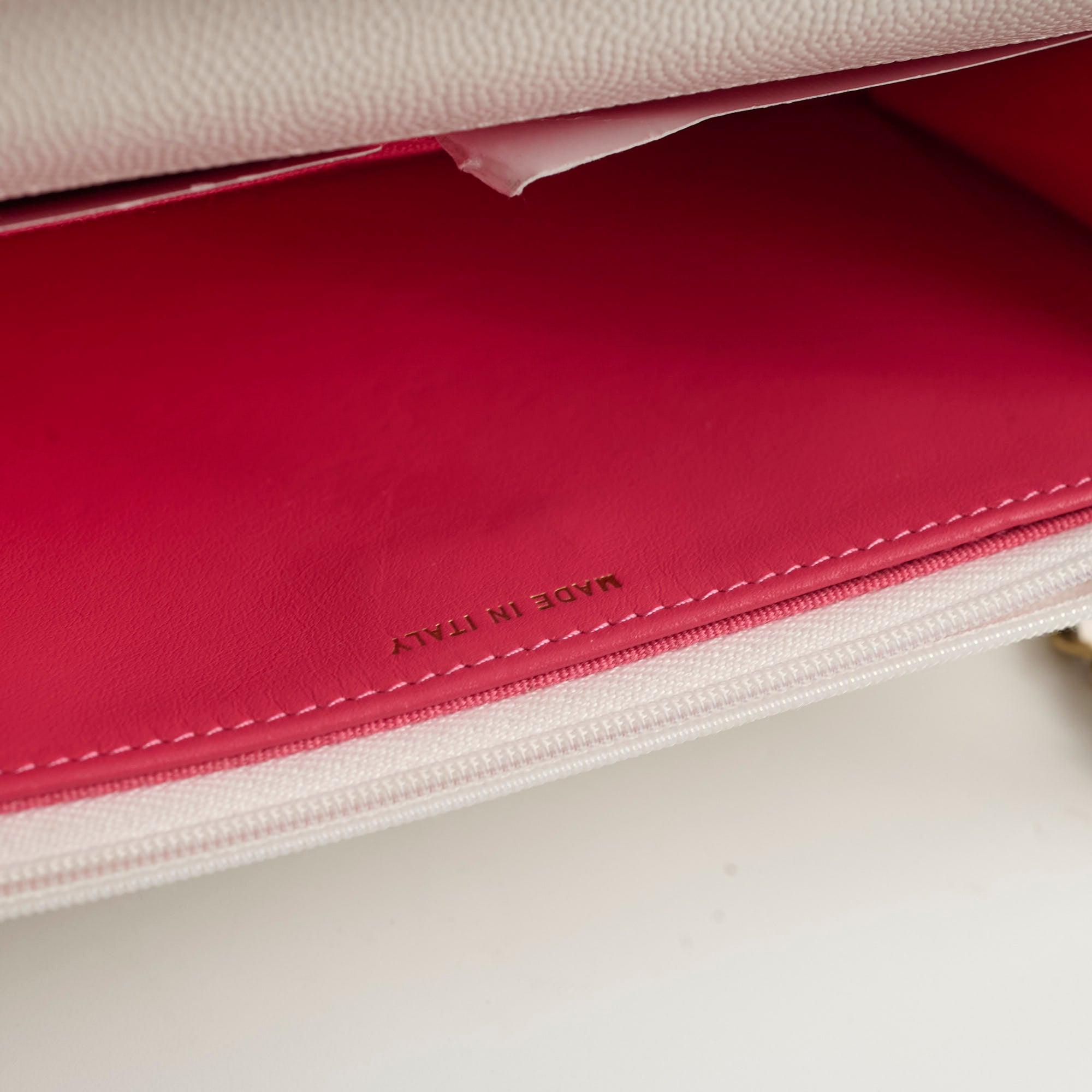 Light mark near base, minor indent from zipper (unavoidable), light indents interior