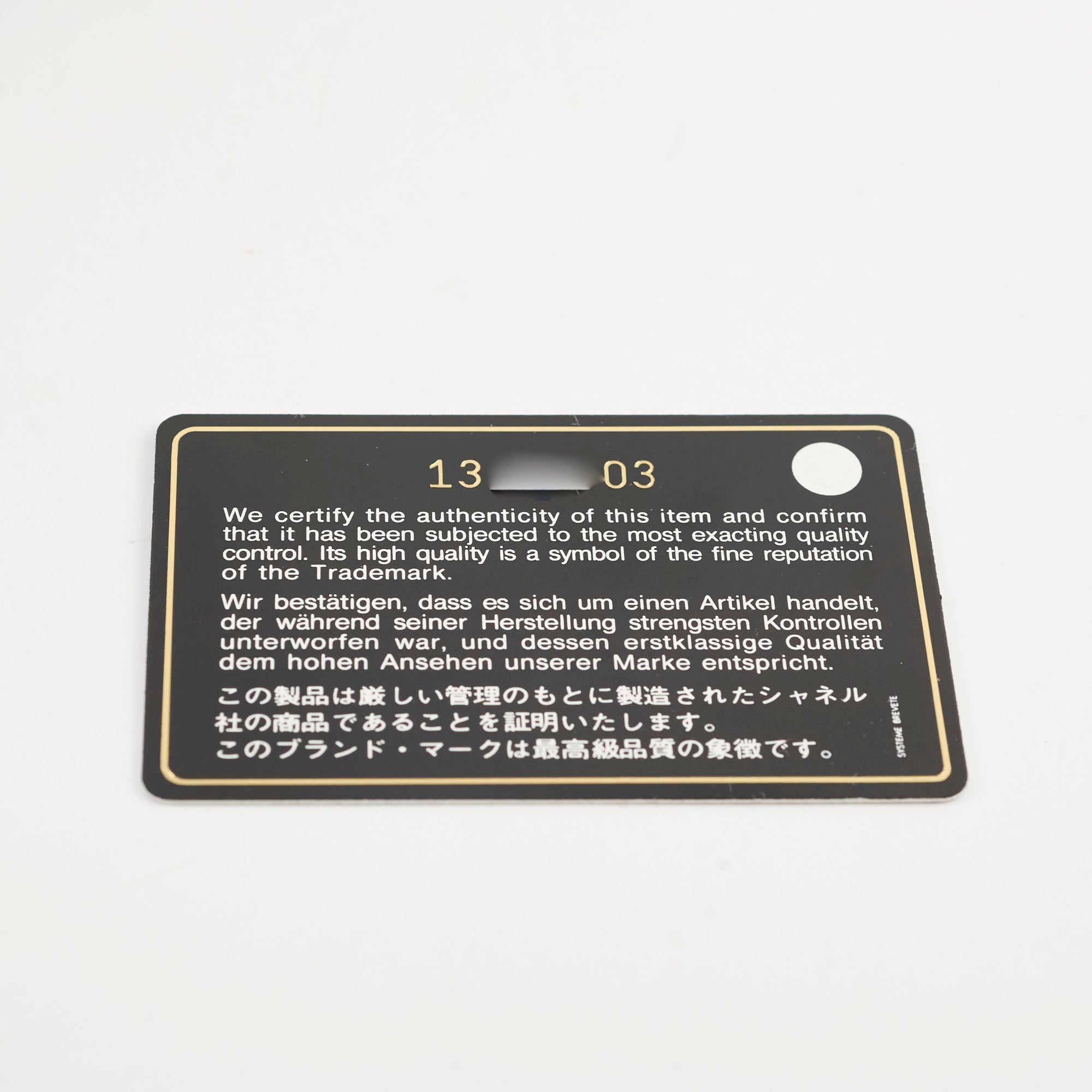 Authenticity Card, Dustbag