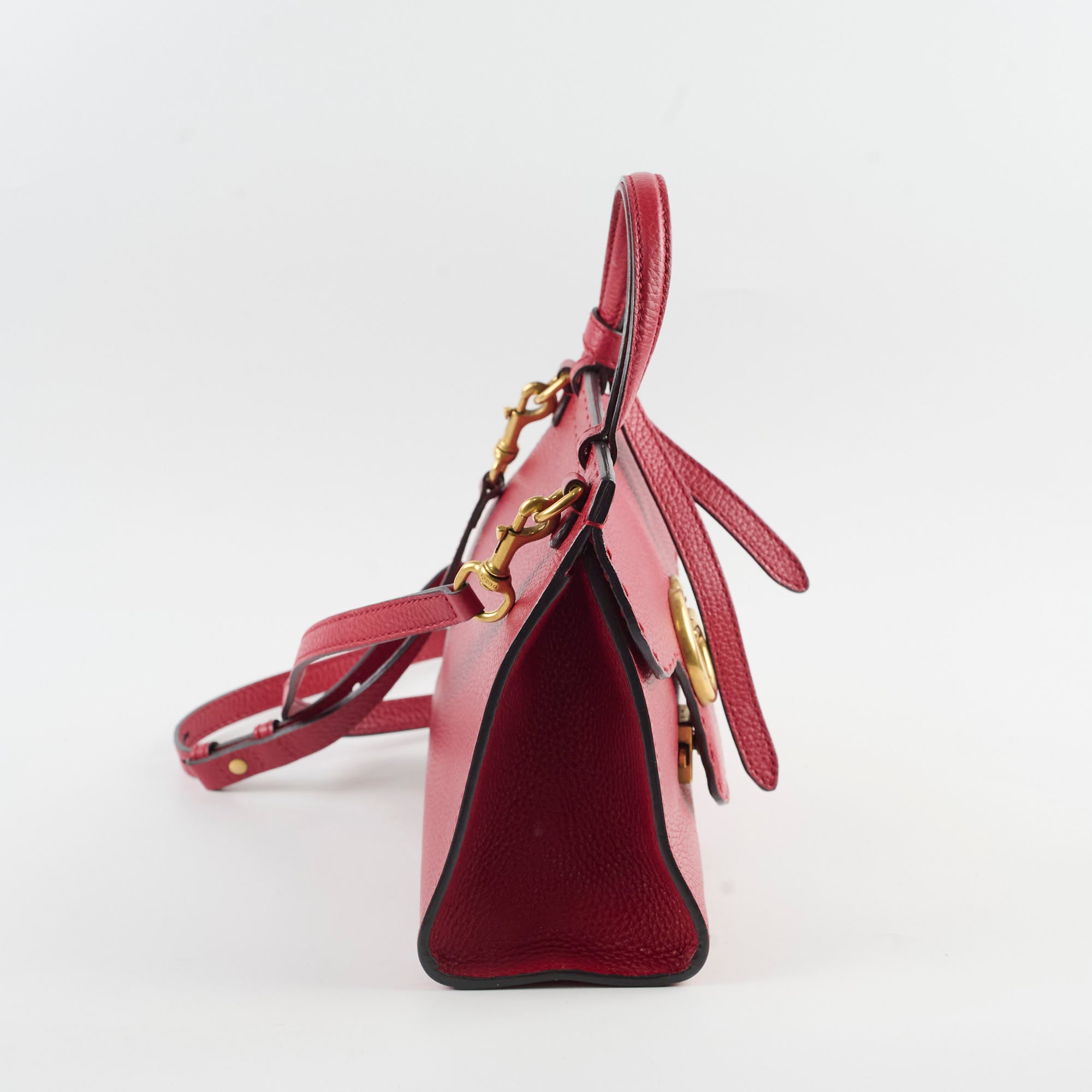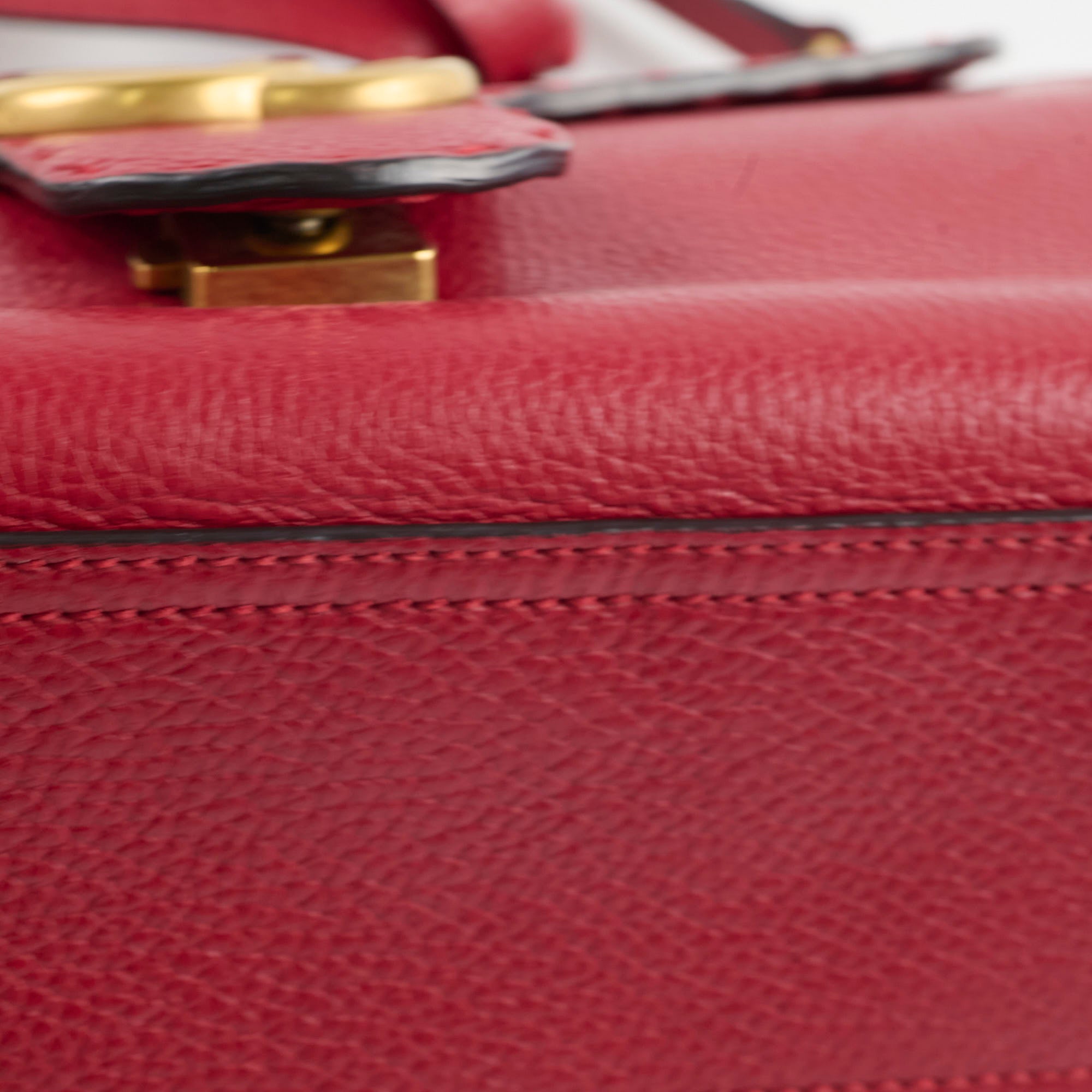 Scuffs on front & near clasp, stains interior, scratches on hardware