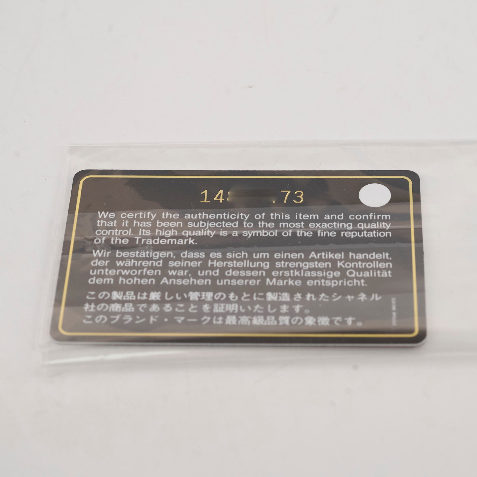Authenticity Card, Dustbag