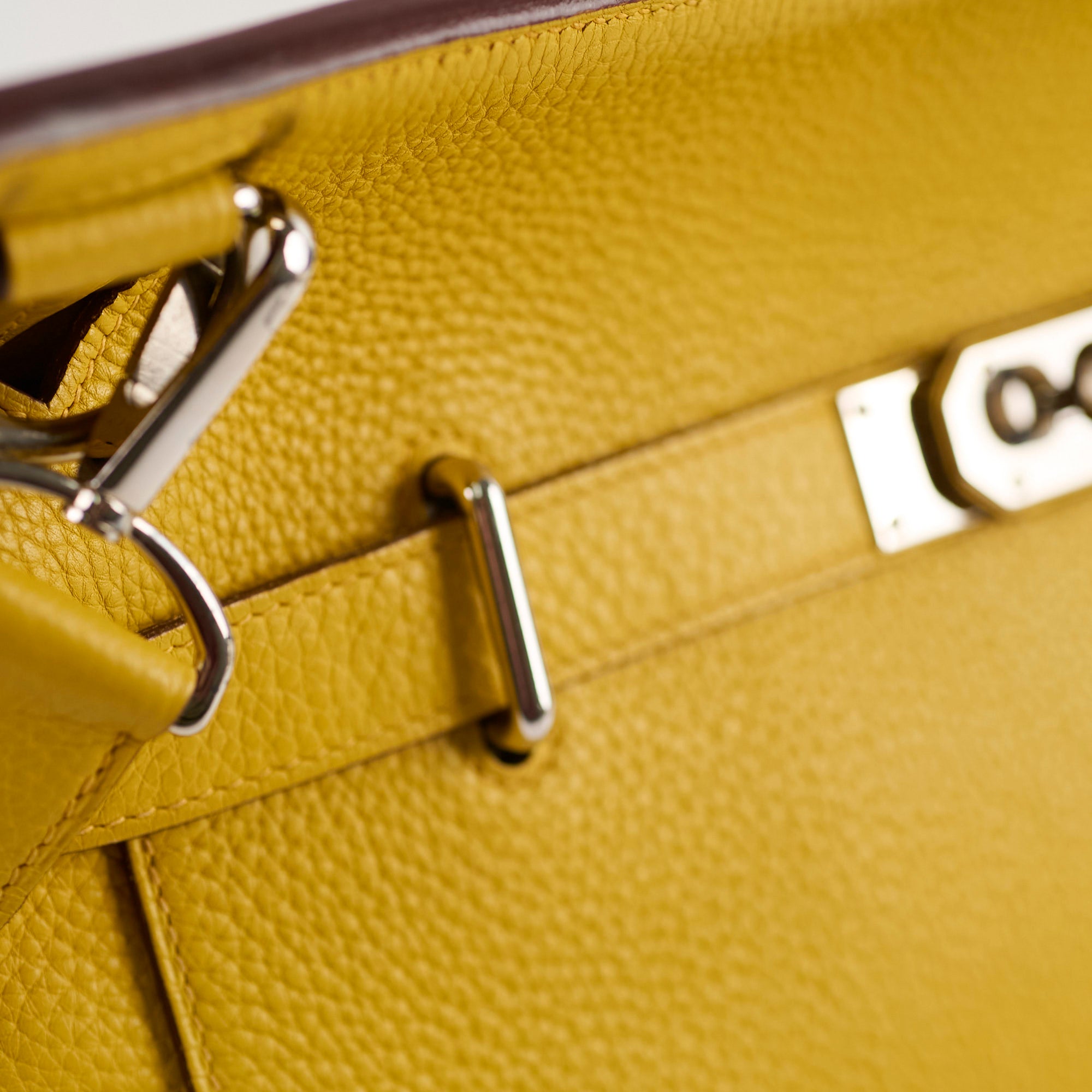 Scratches on hardware, Light creasing on leather, minor mark near base, light peeling on glazing on sides, nail marks interior, Light tarnishing on hardware