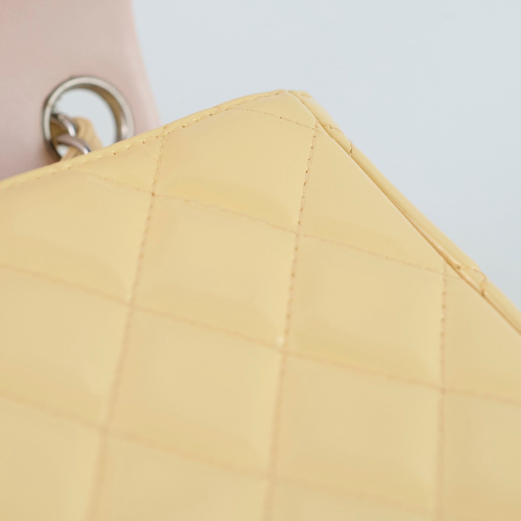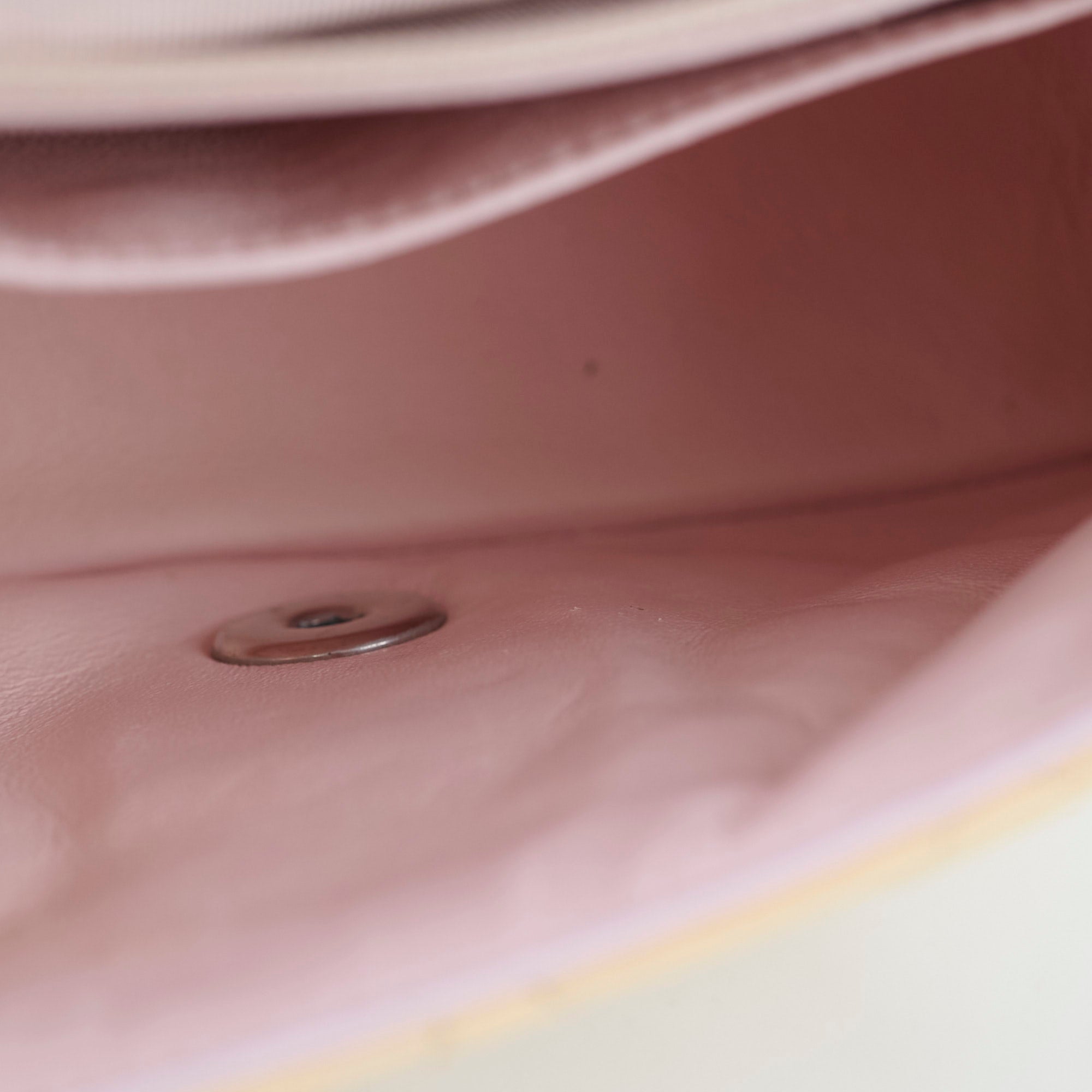 Minor stains on leather(front, bottom and back), scratches on hardware, creasing on sides, light creasing on interior leather