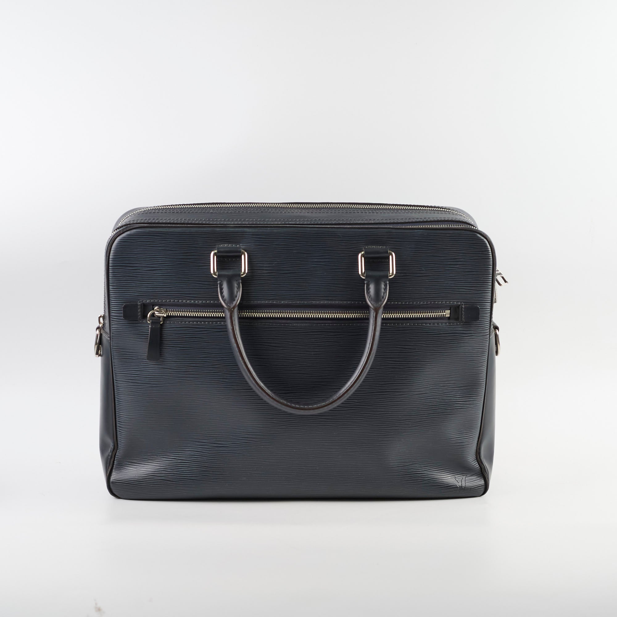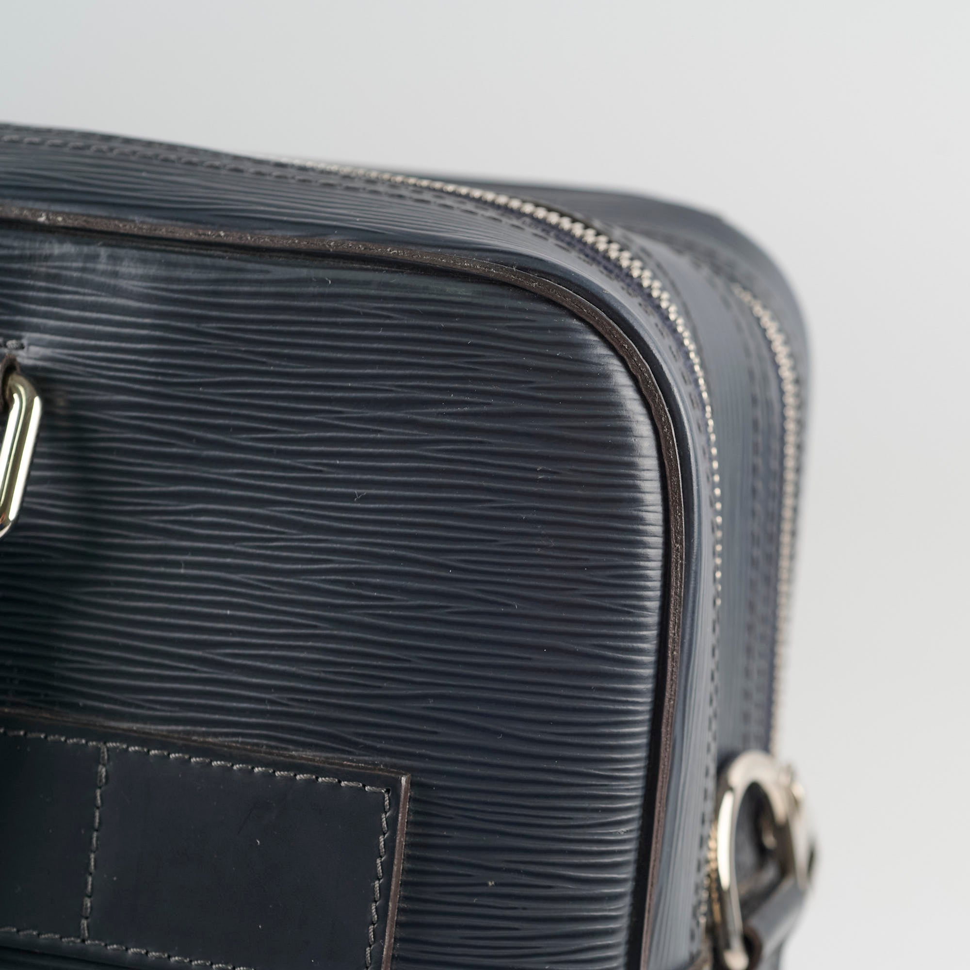 Scuffs/Marks on front, light rubbing on corners, light hairline scratches & tarnishing on hardware, clean interior