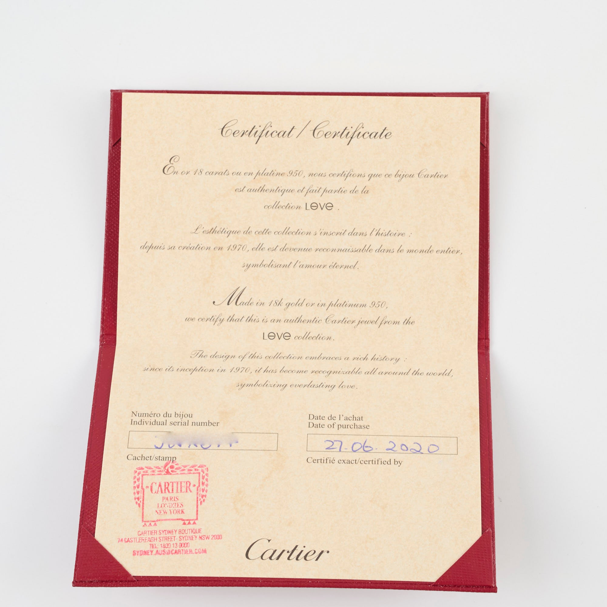 Inner Box, Authenticity Certificate