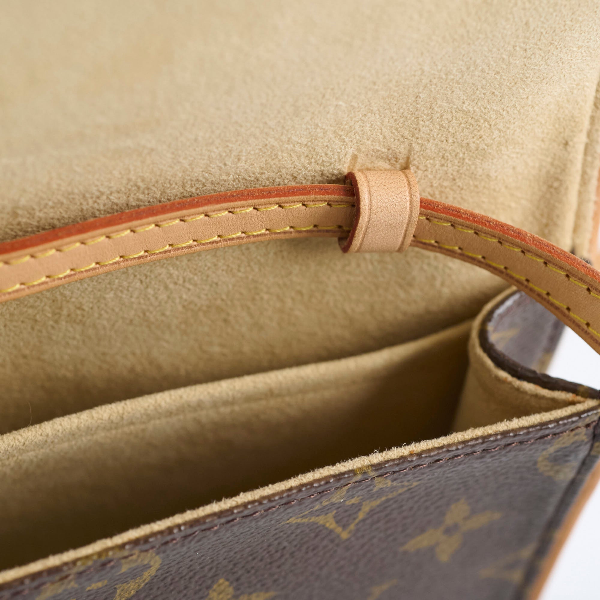 Rubbing on corners, slight patina on leather strap, signs of wear on the interior