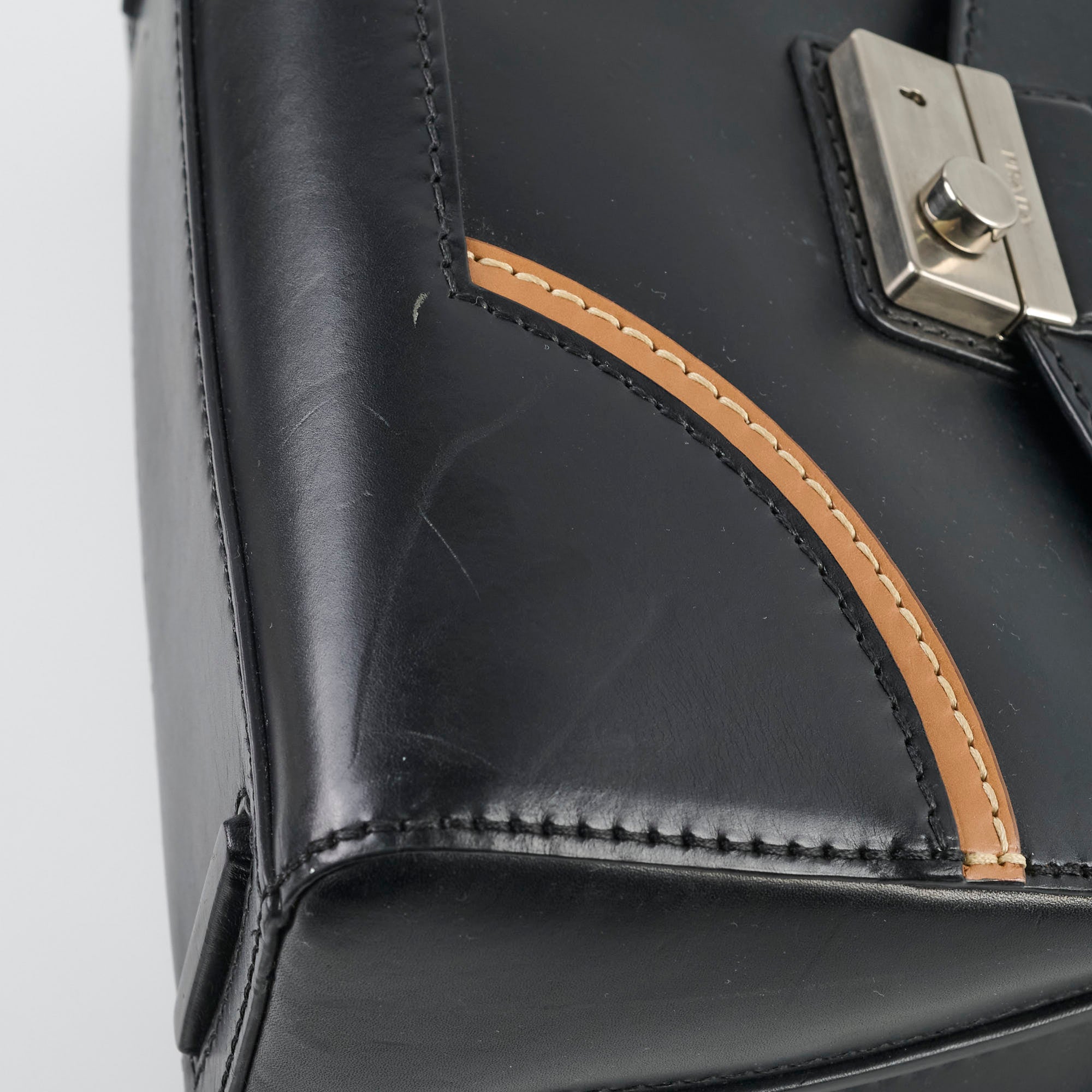 Scuffs throughout, Scratches on hardware, creasing on leather interior