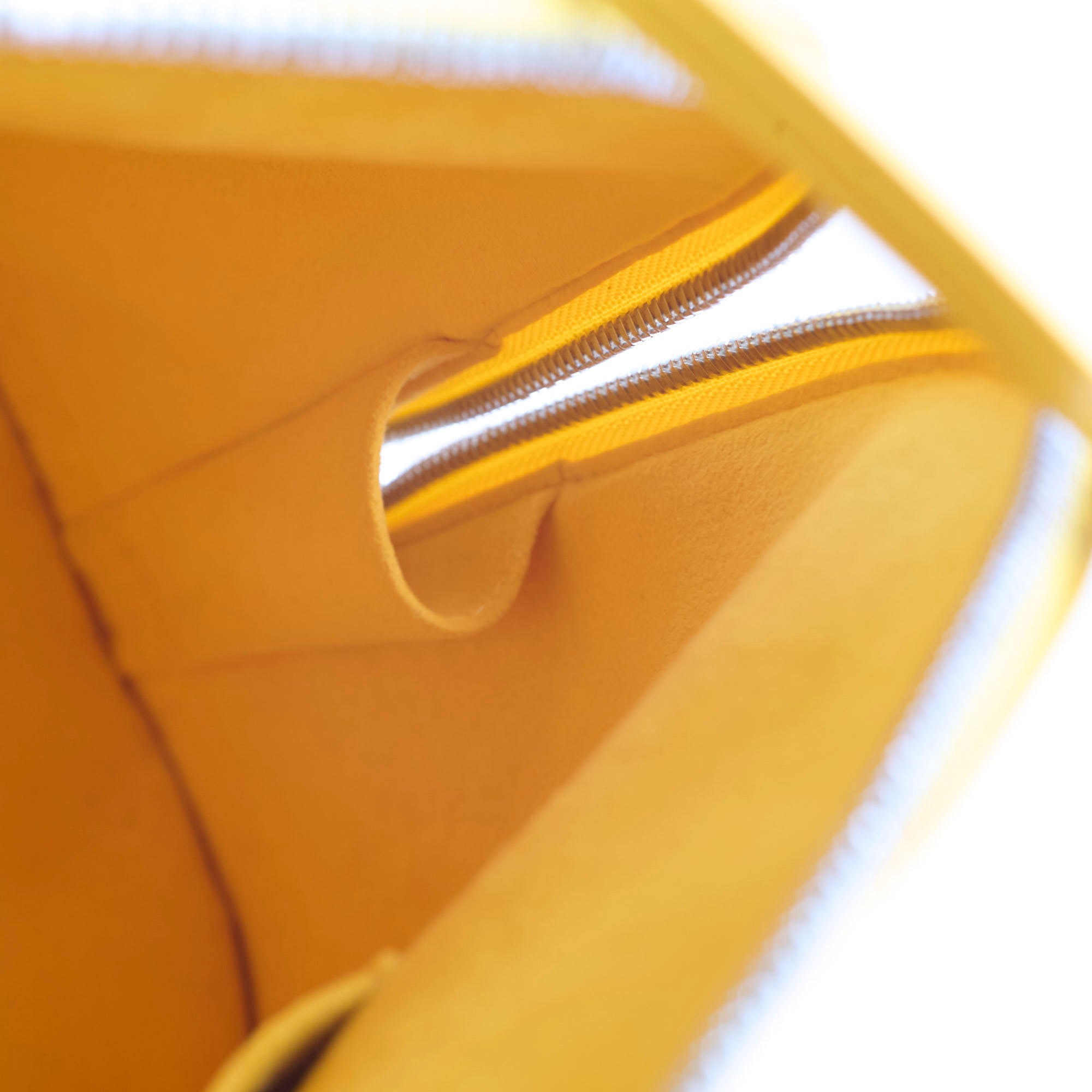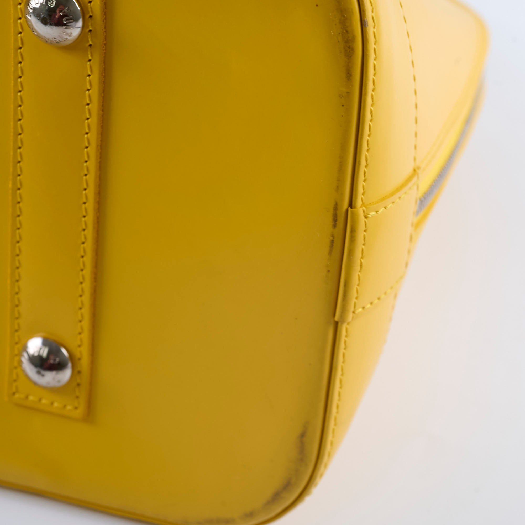 Rubbing on corners and along bottom edges, slight fraying to the leather area that holds the handles (not impacting functionality), storage odour, signs of wear on the interior
