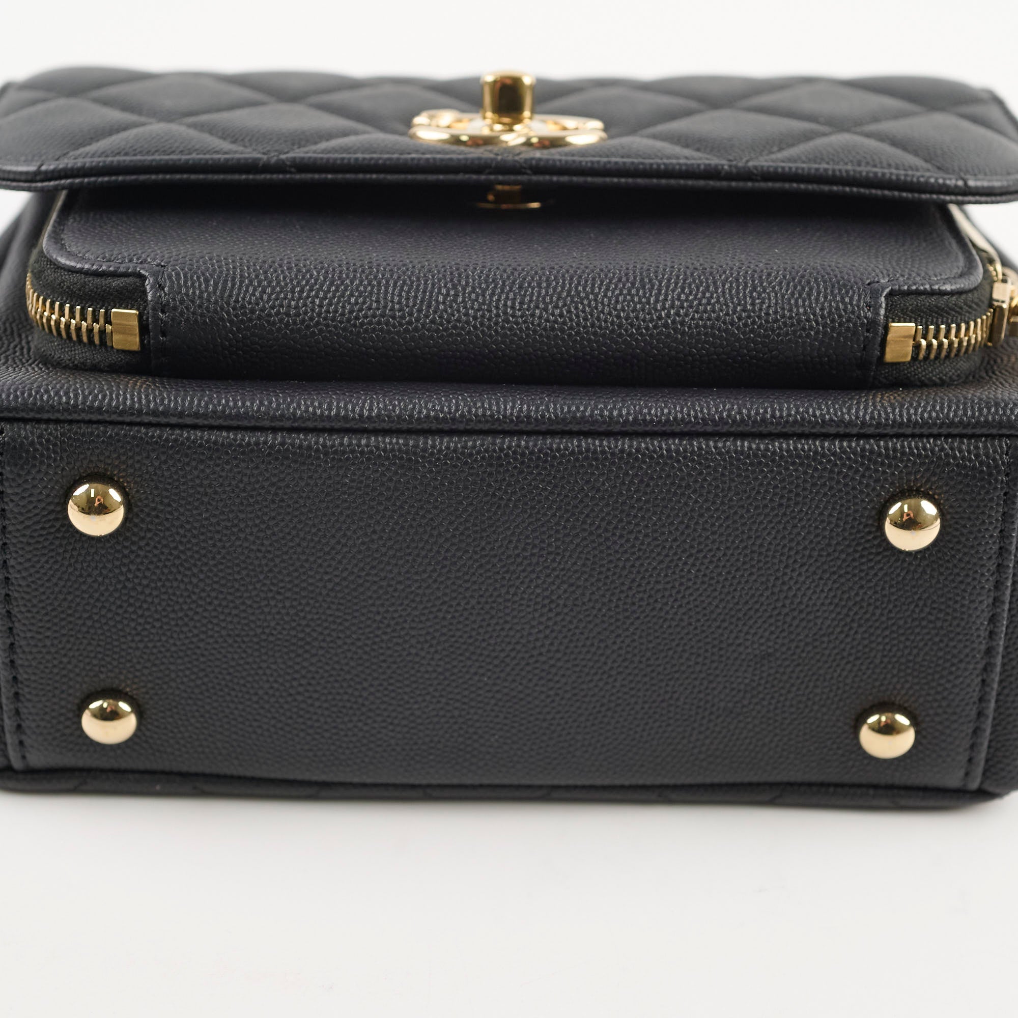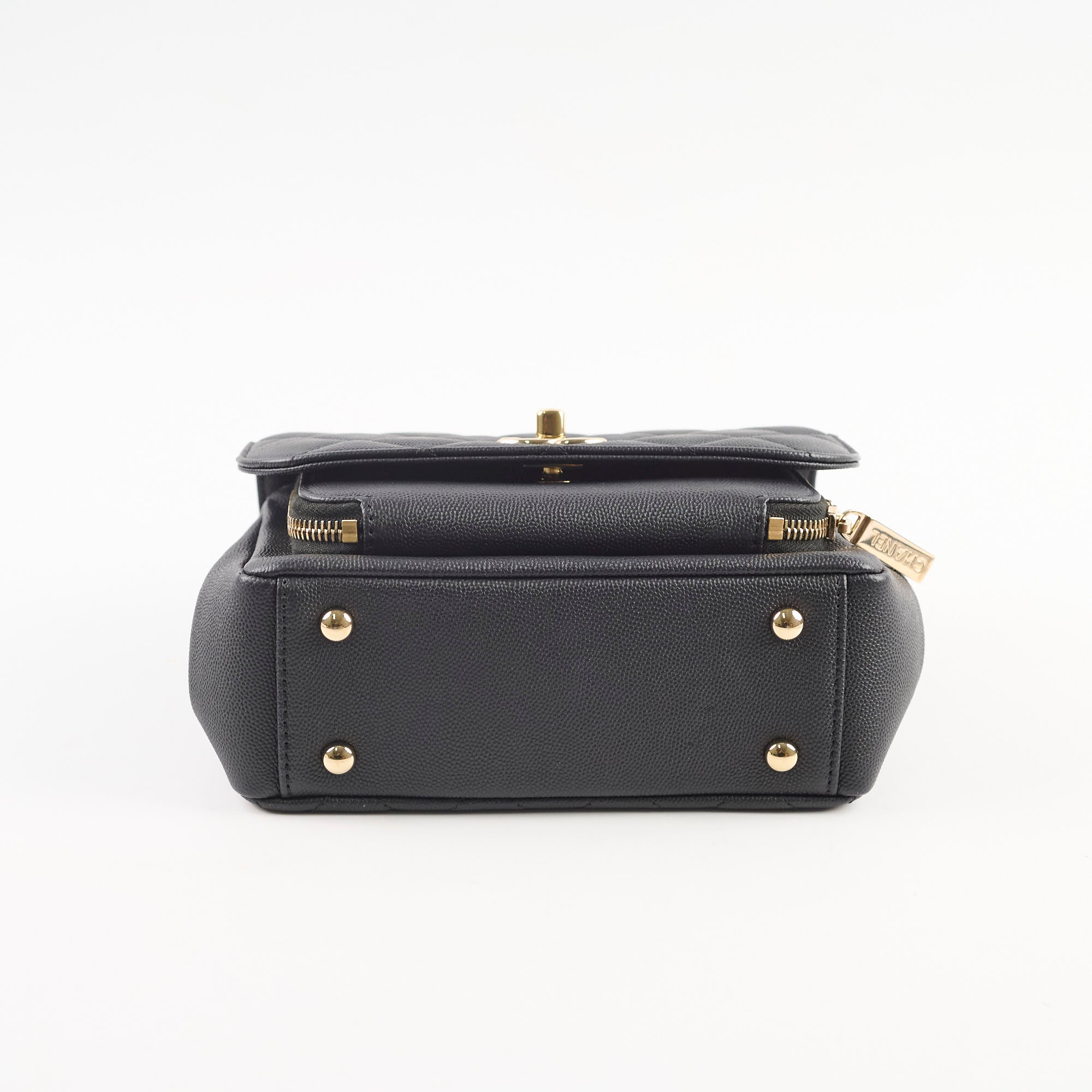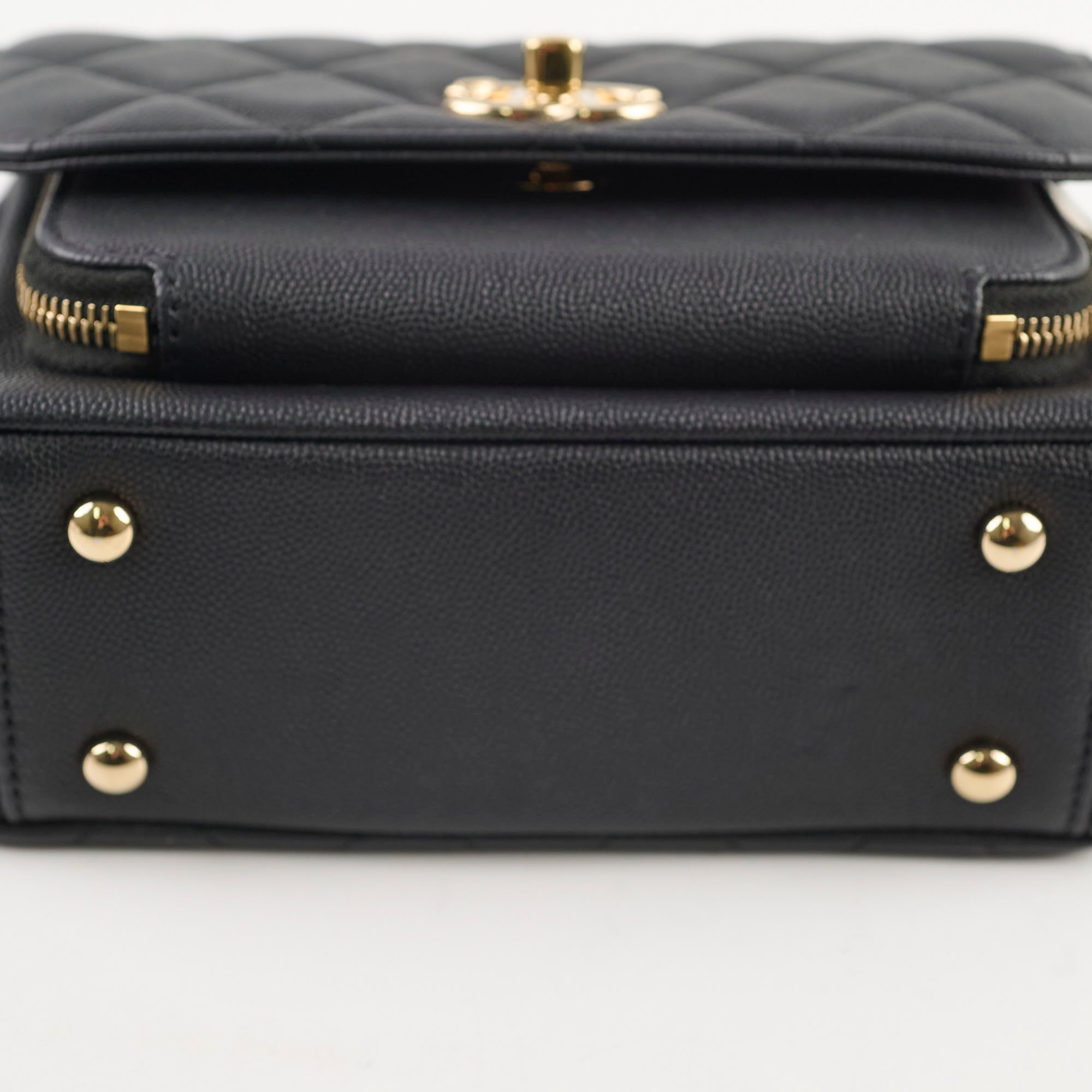 Hairline scratches on hardware, slight signs of wear on the interior, clean corners, excellent structure
