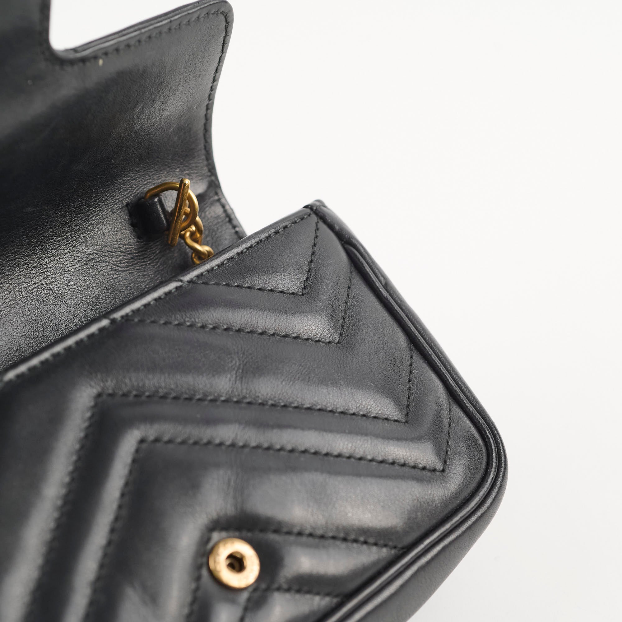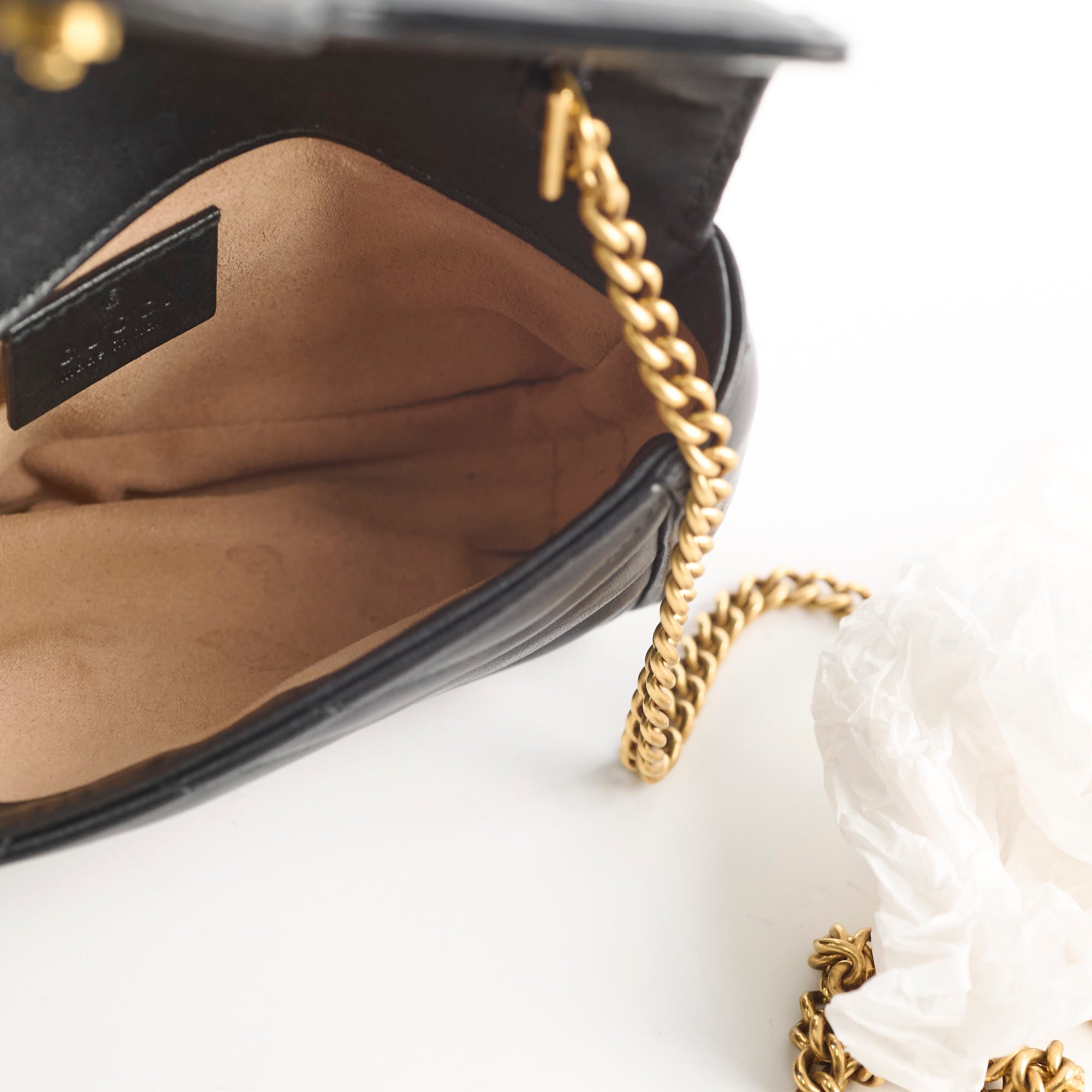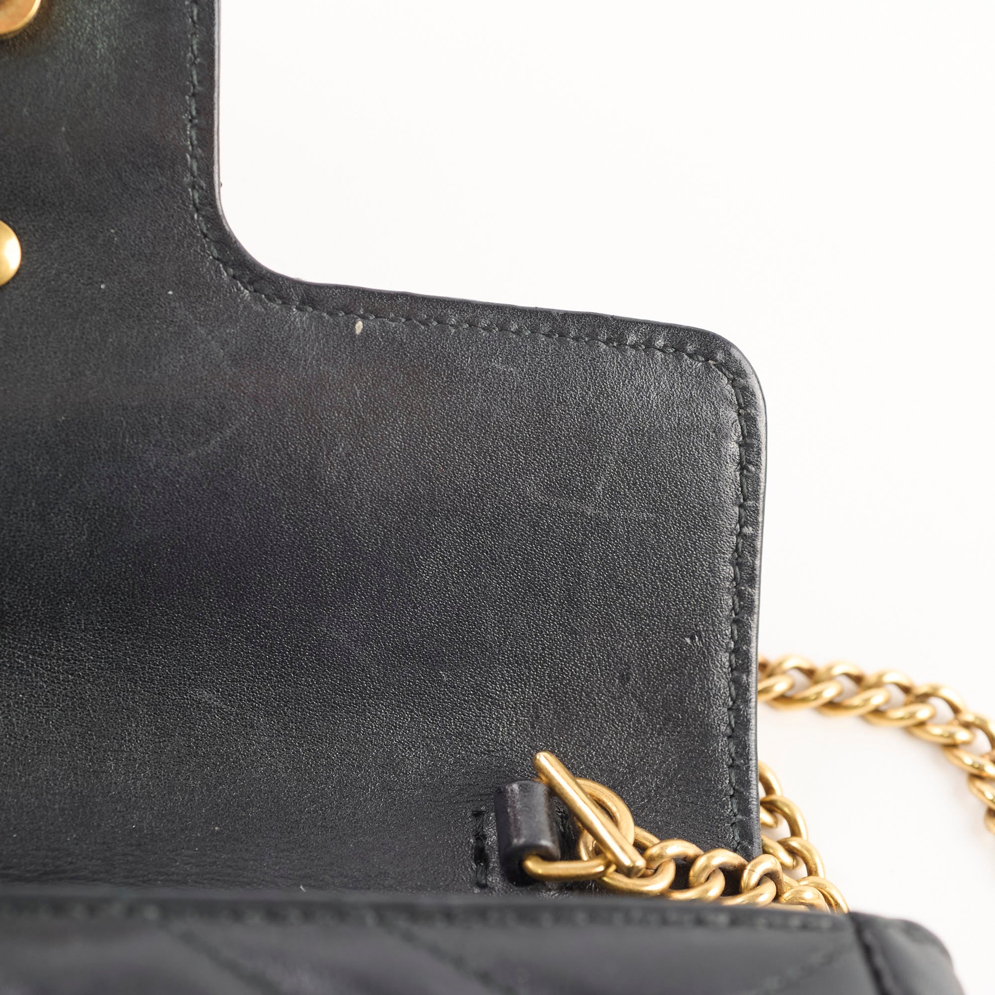 Sight signs of wear on the interior, hairline scratches on hardware, clean corners, leather in excellent condition