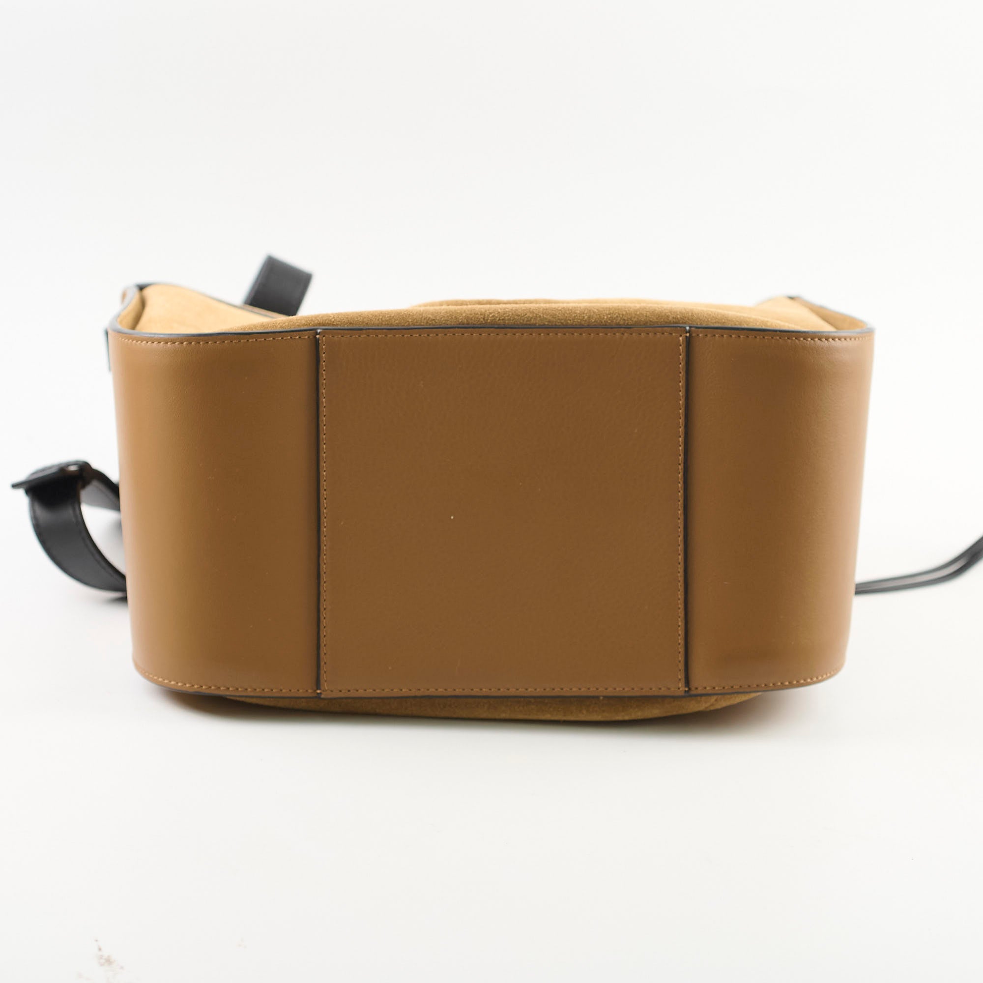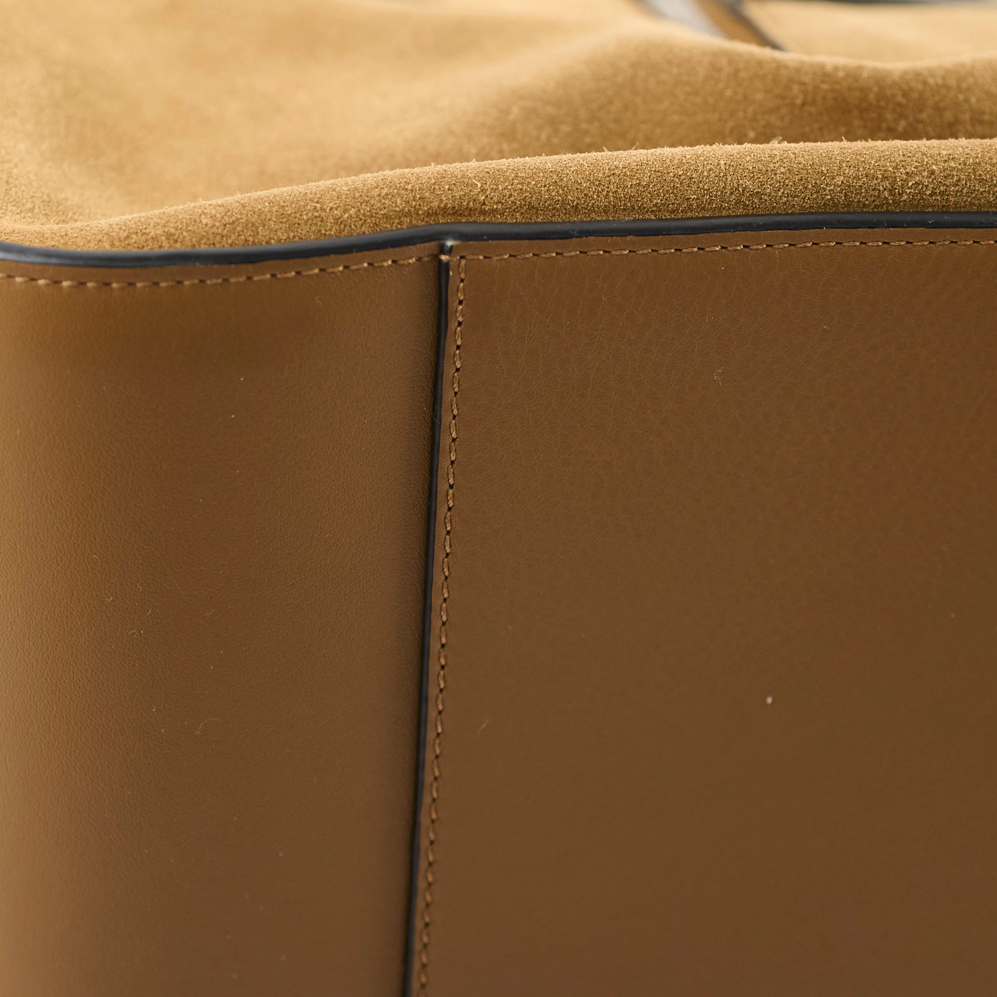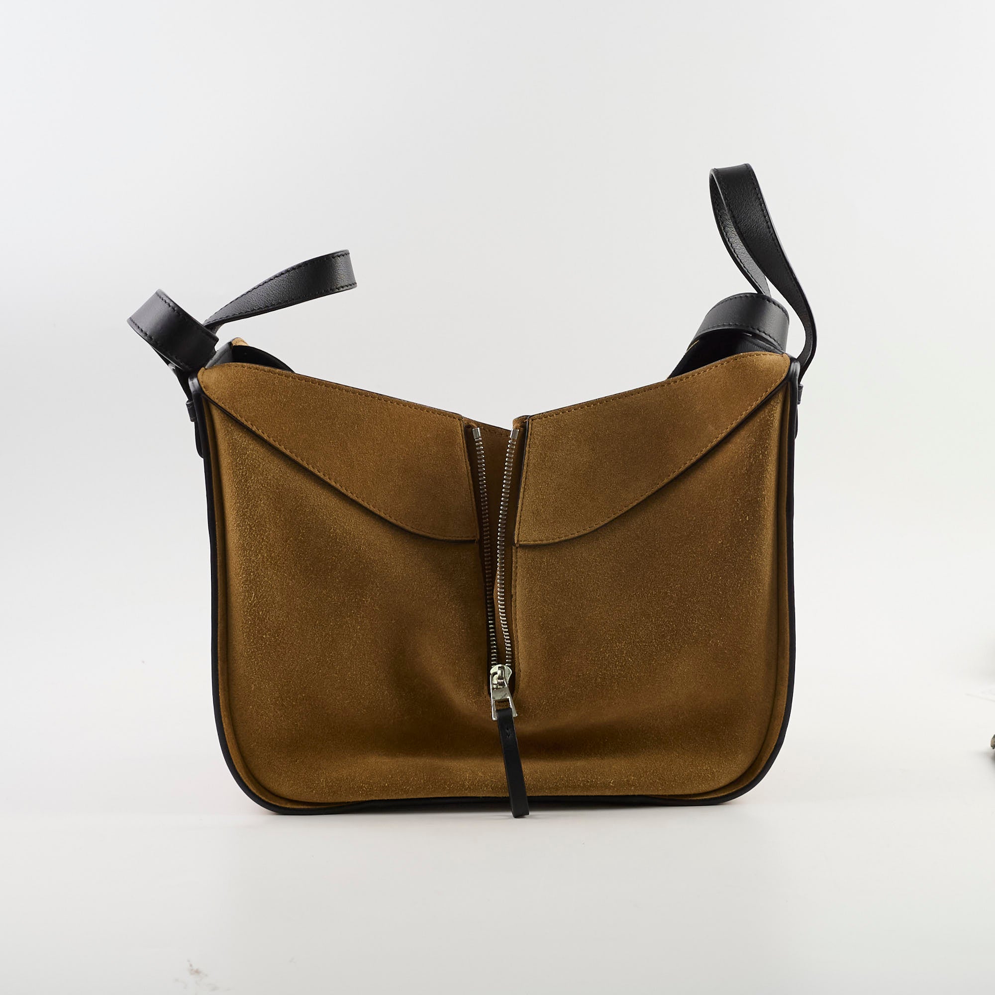 Signs of wear on suede, softened structure, light scratches on hardware, clean inside