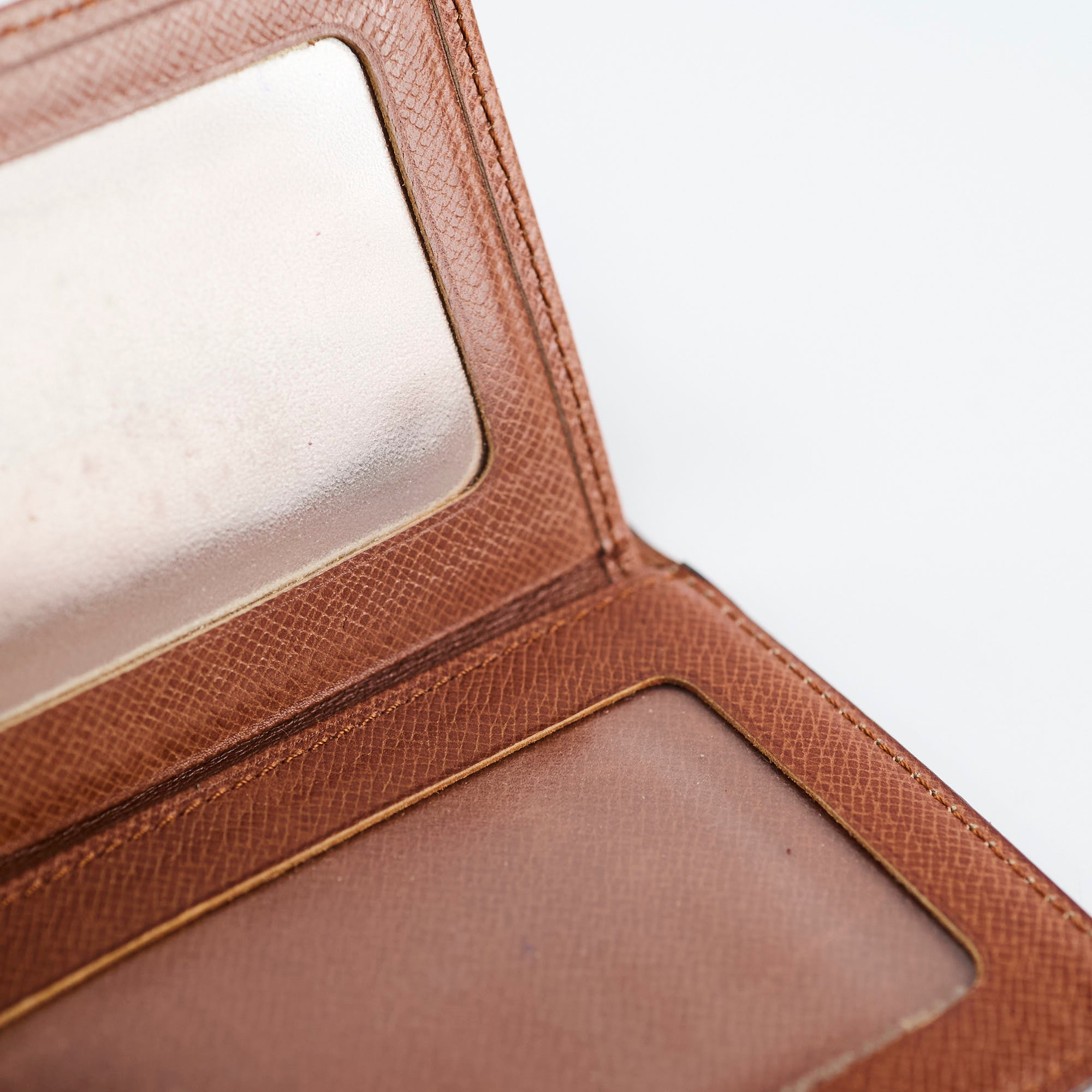 General signs of wear throughout, canvas in great condition, leather softening, nail marks on the interior