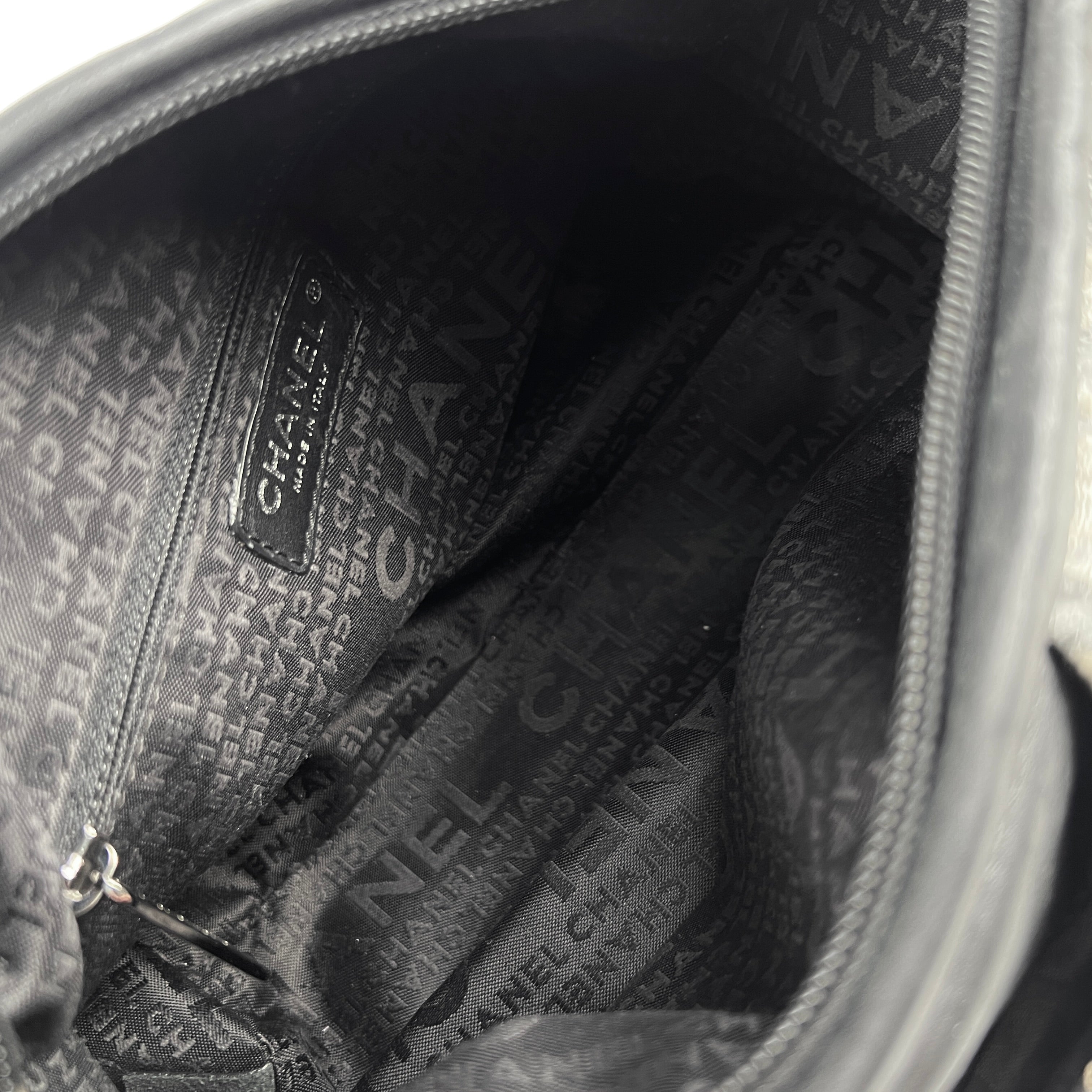 Light discoloration, hairline scratches hardware, minor pilling throughout