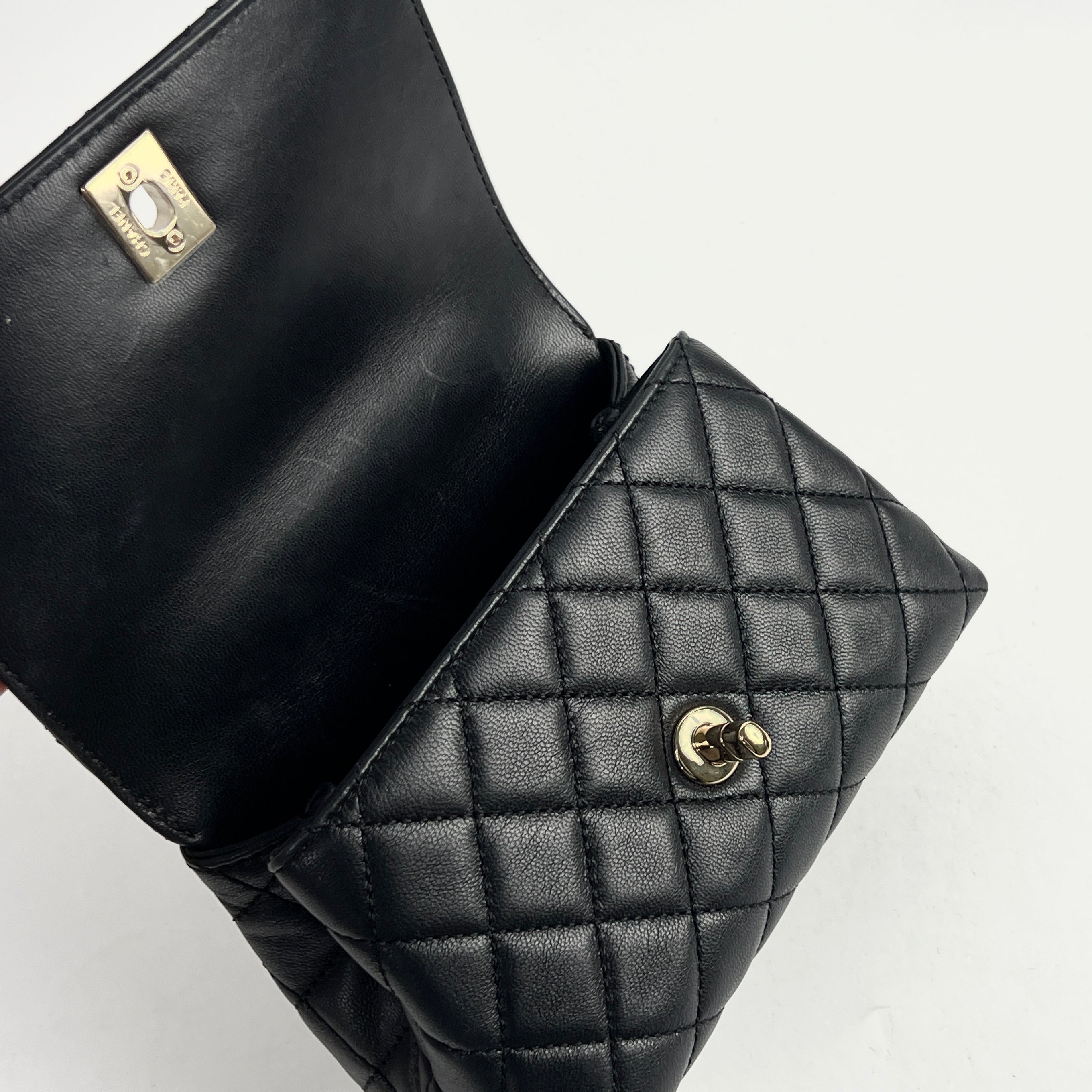 Nail marks under the flap, hairline scratches on hardware, clean corners, clean interior