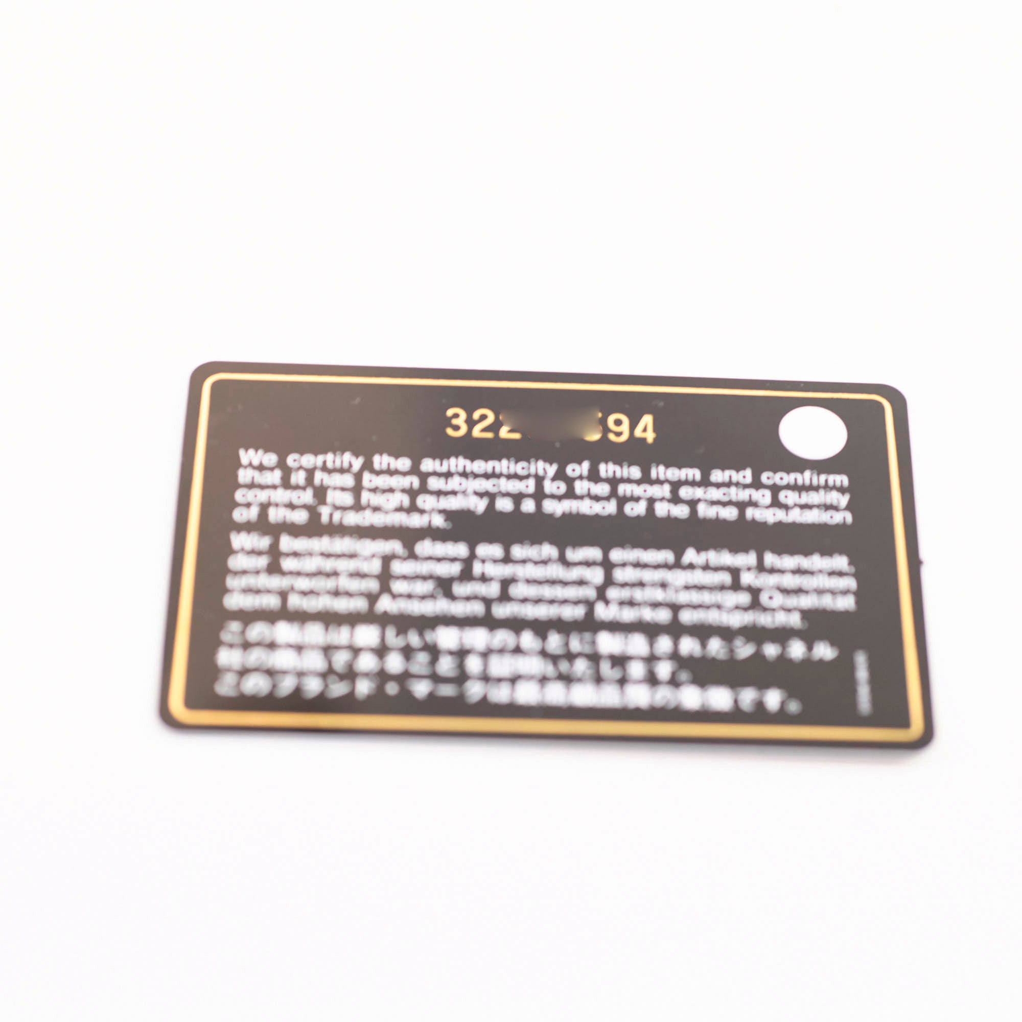 Authenticity Card, Dustbag