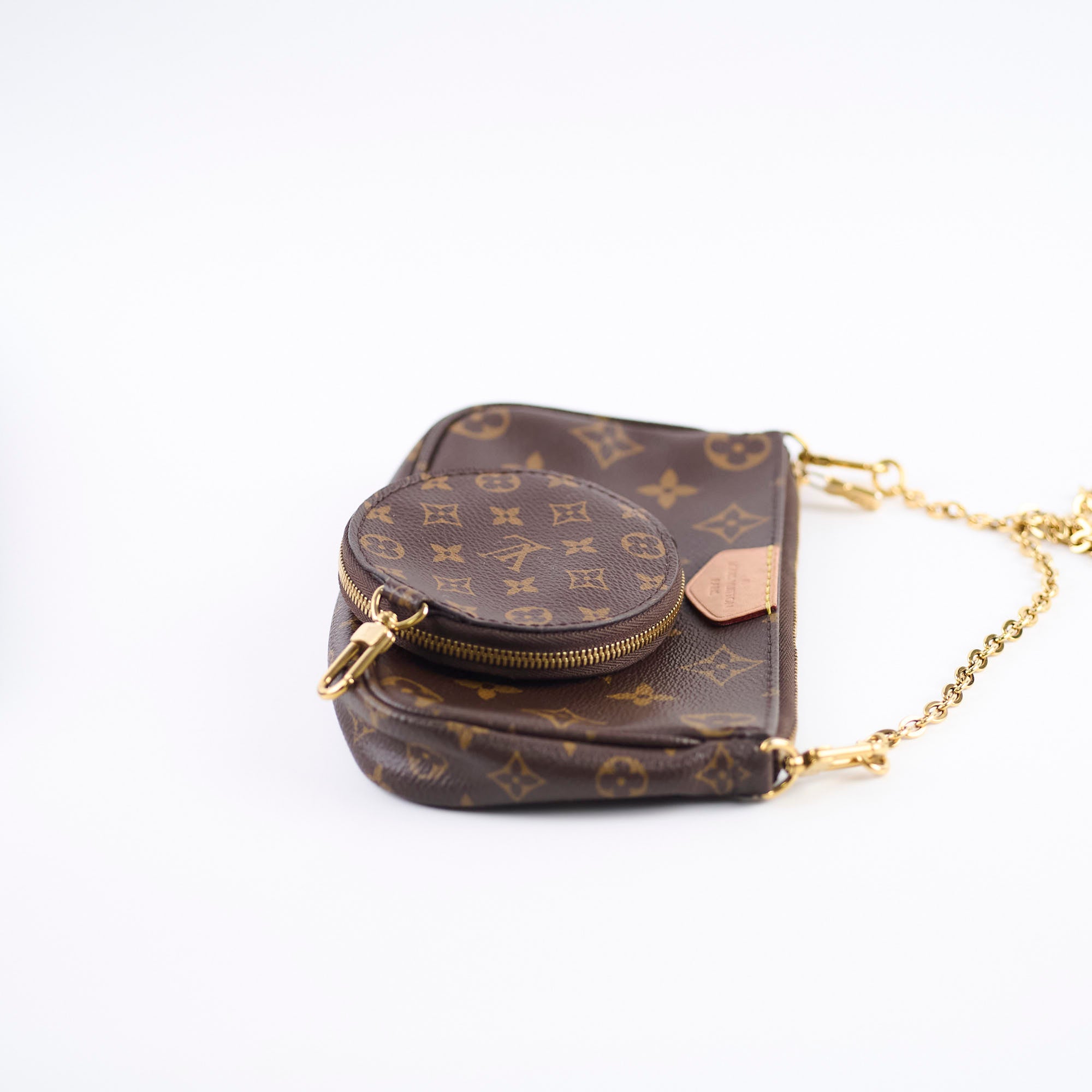 Light darkening on vachetta, small mark on leather tab small pouch, hairline scratches & minor tarnishing hardware