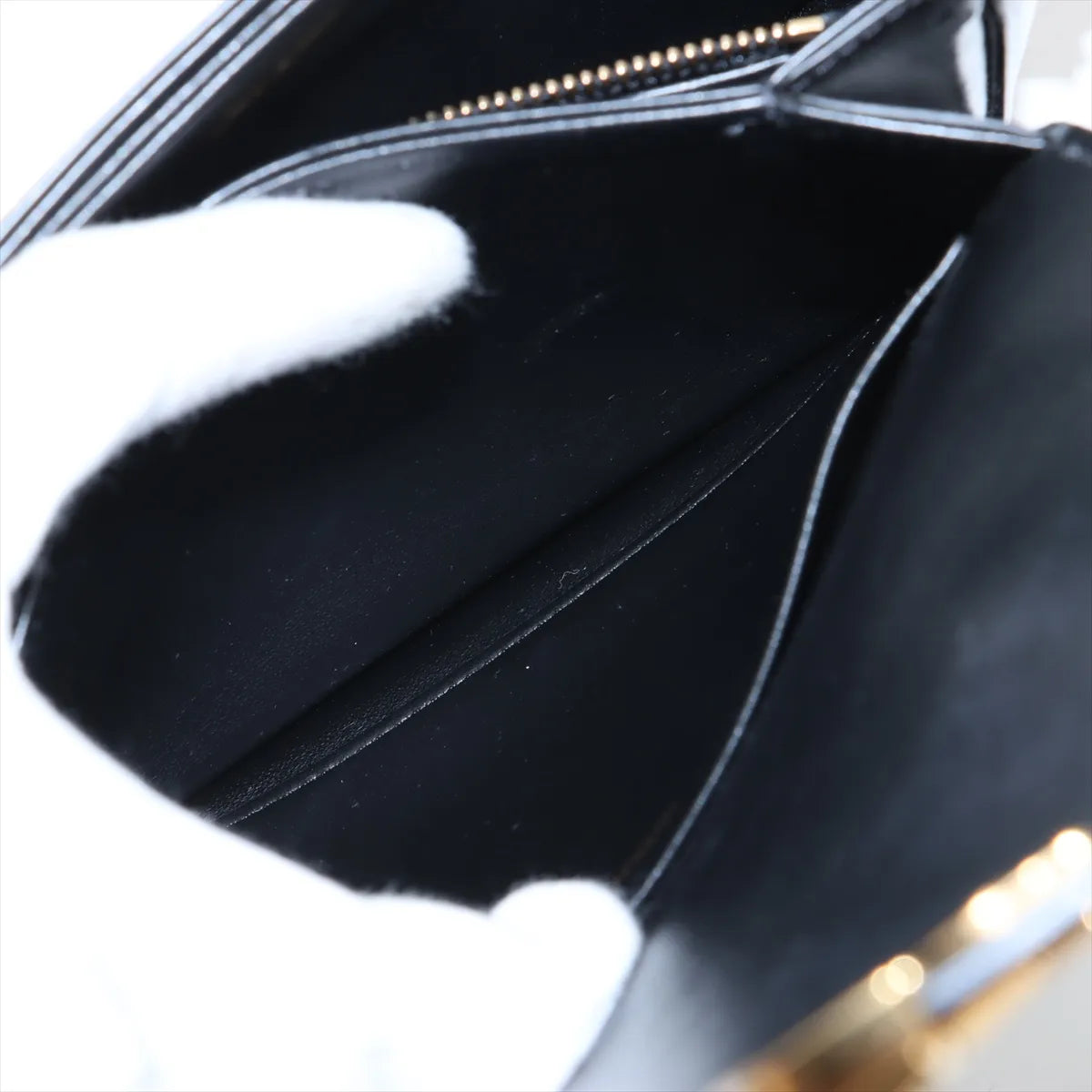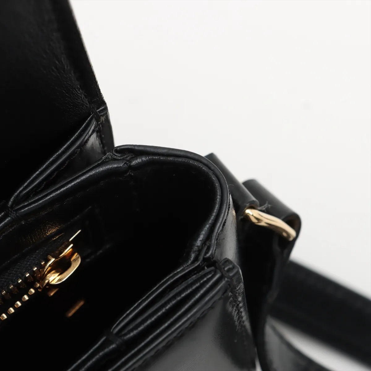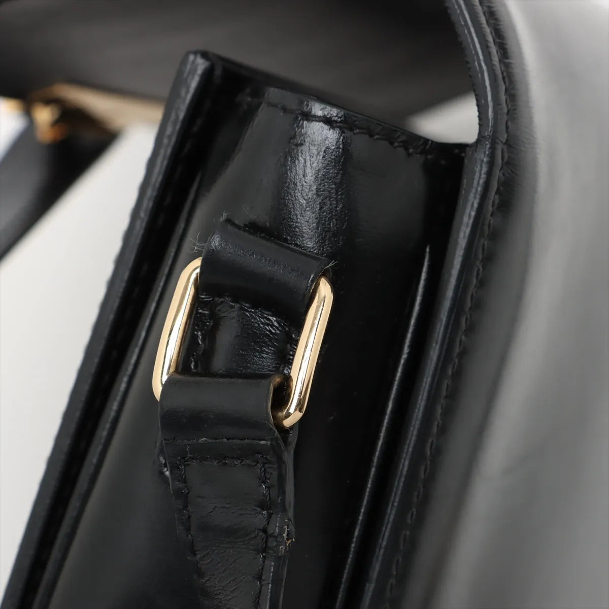 Nail marks at the back, minor peeling on the side, signs of wear on the strap, structure still intact, clean interior