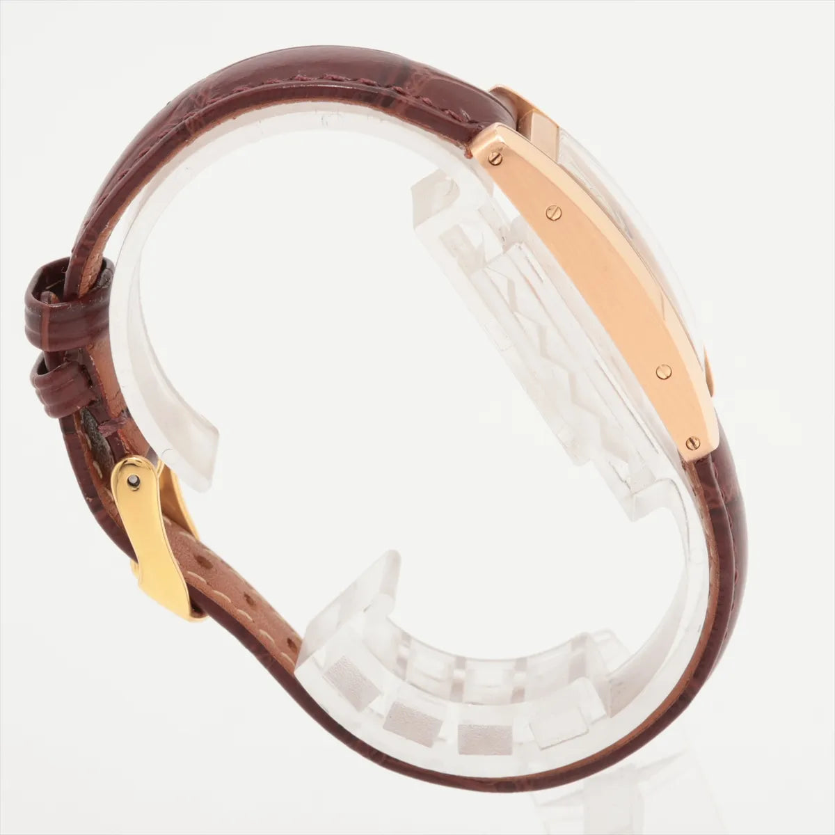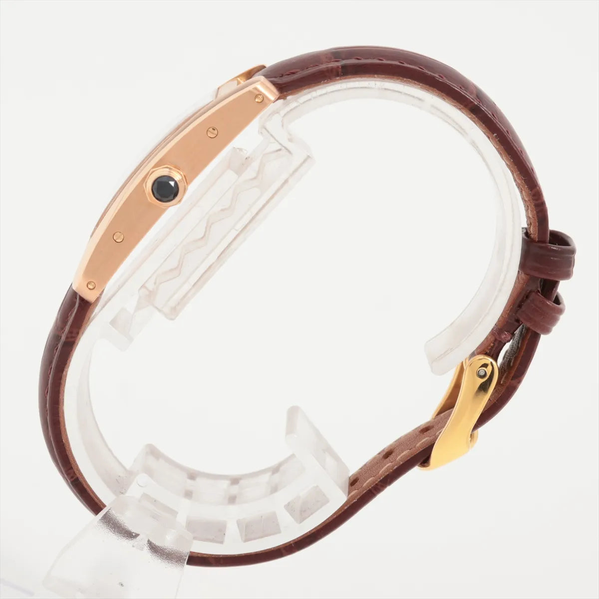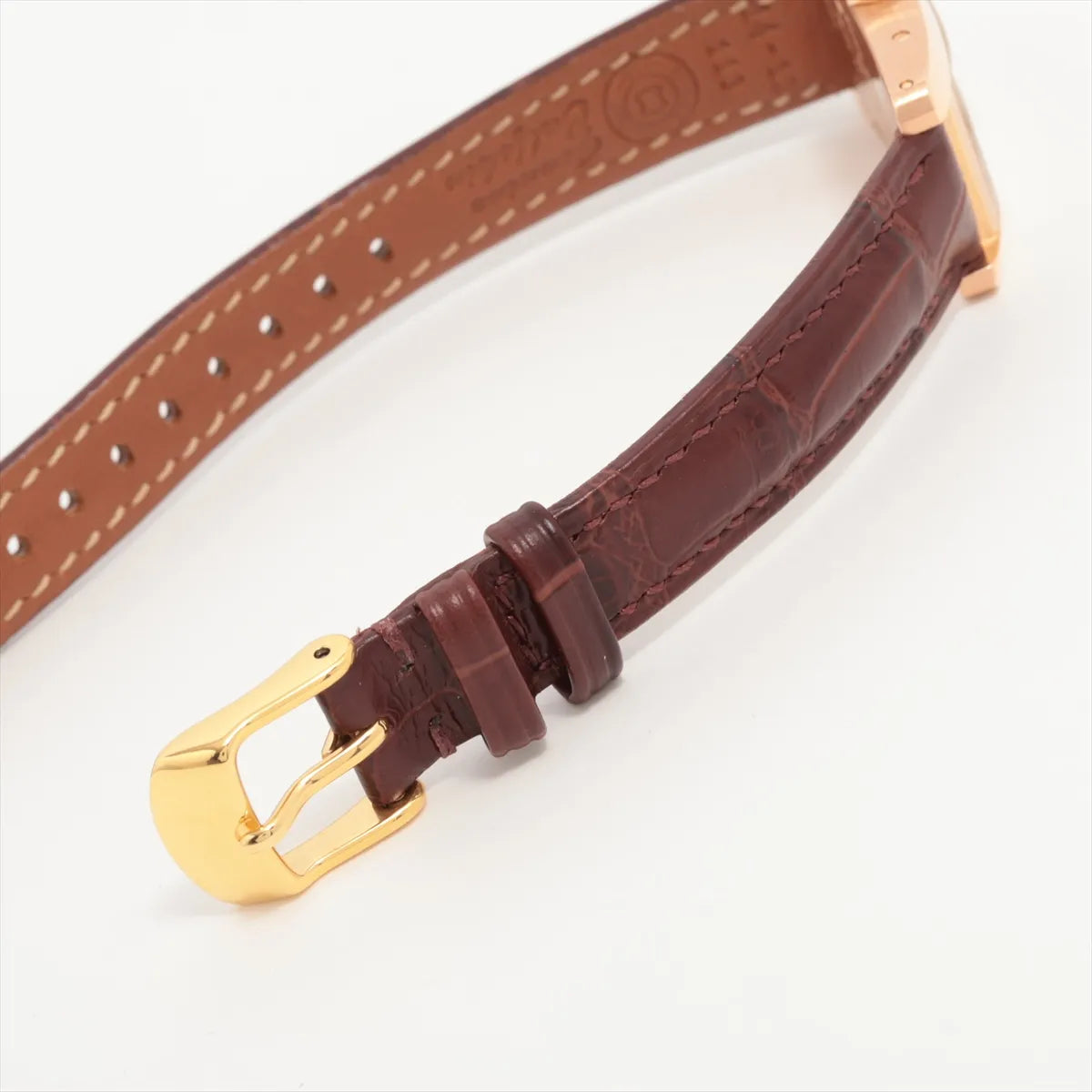 Hairline scratches on hardware, no chip or scratches on the face, third party strap (with gold hardware)