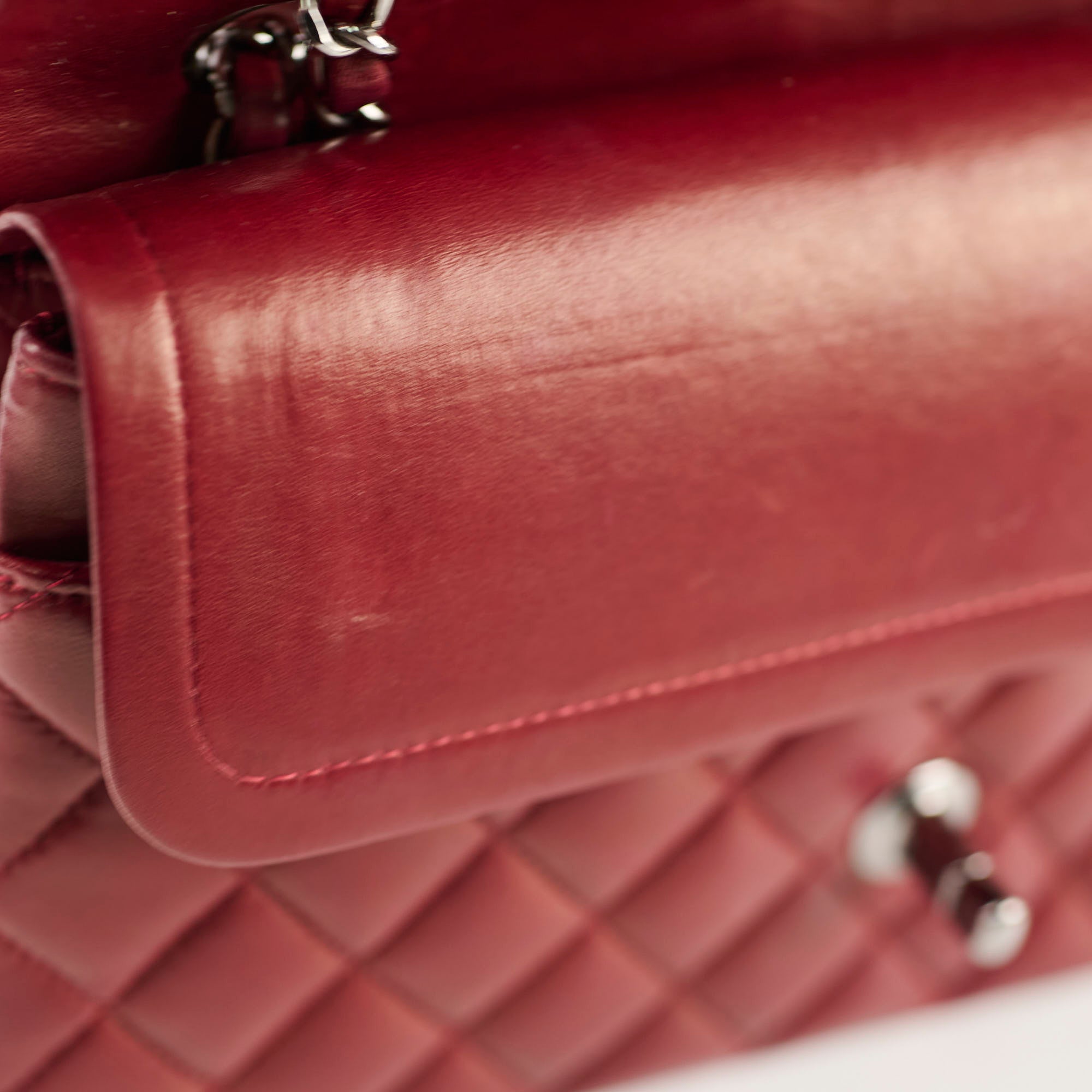 Light nail marks & creasing on leather, some marks under flap, structure slightly softened