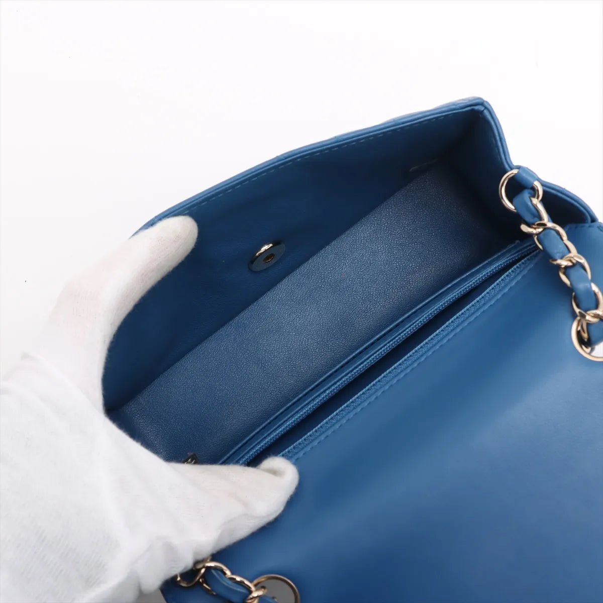 Minor nail marks under flap, light hairline scratches on hardware, minor creasing on front, some stickers still on hardware