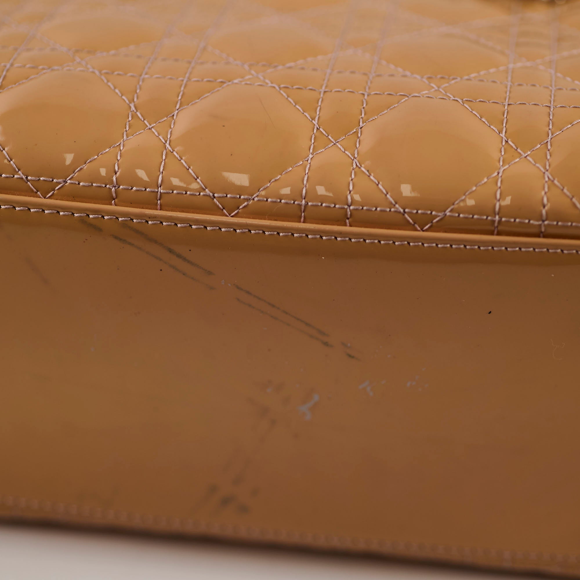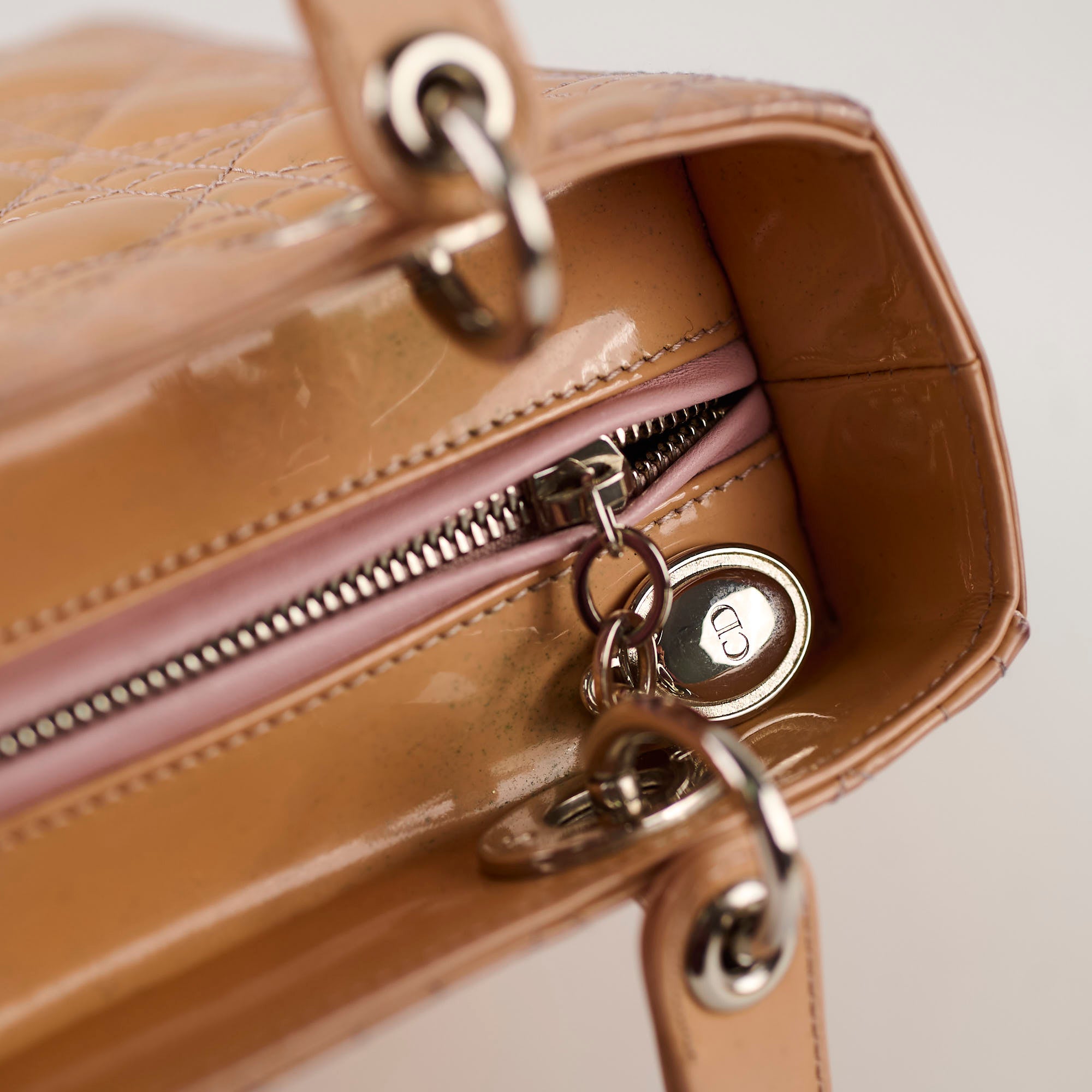 Colour transfer throughout, marks on base & area near charms, hairline scratches on hardware, light scuffs throughout