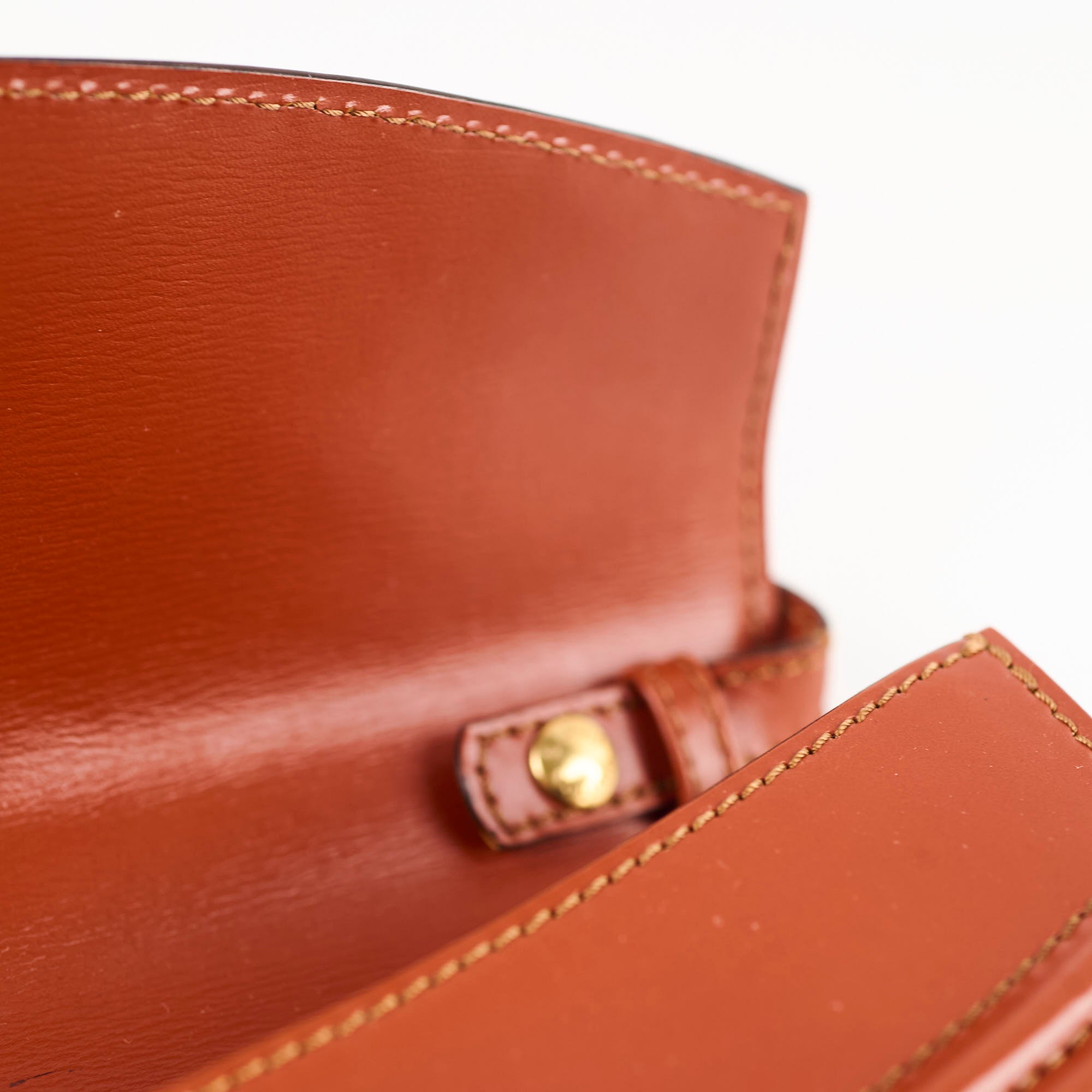 Some corner wears, one mark inside the flap, minor creasing on strap