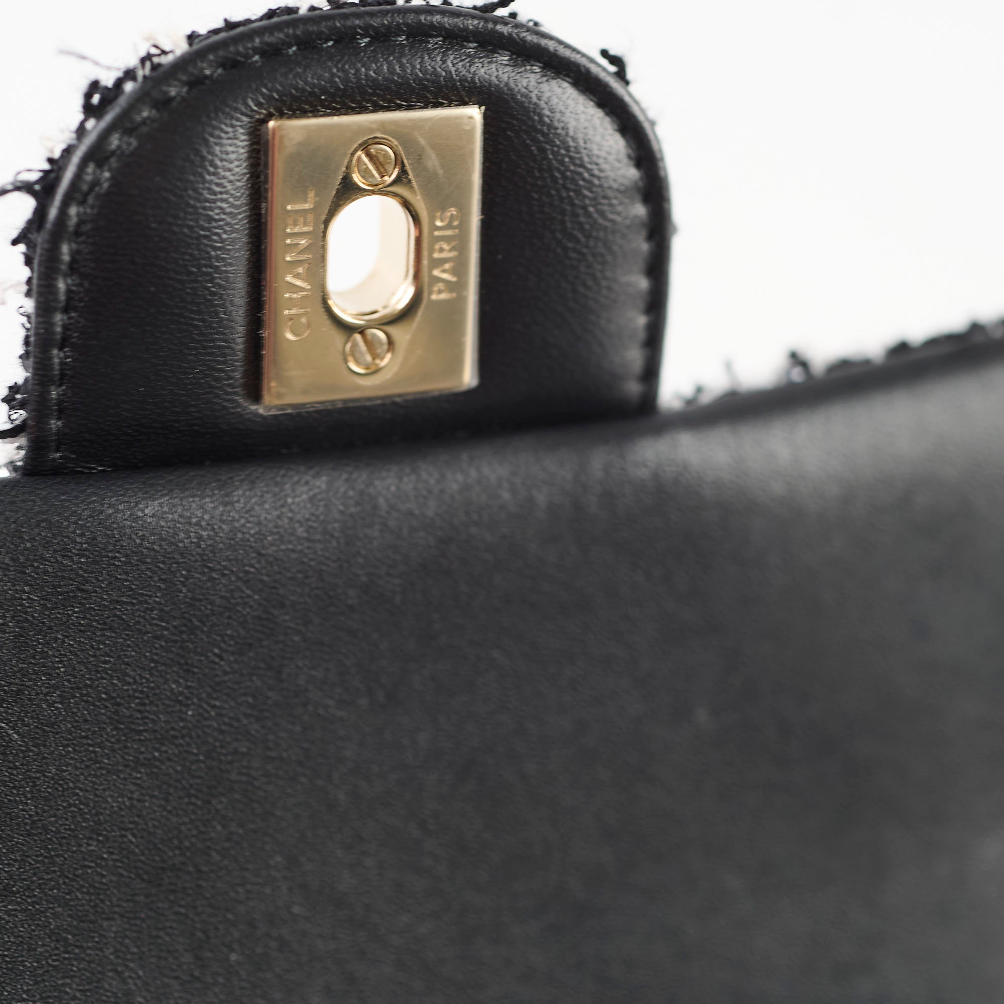 Barely noticeable hairlines on the CC logo hardware. Overall like-new, barely worn.