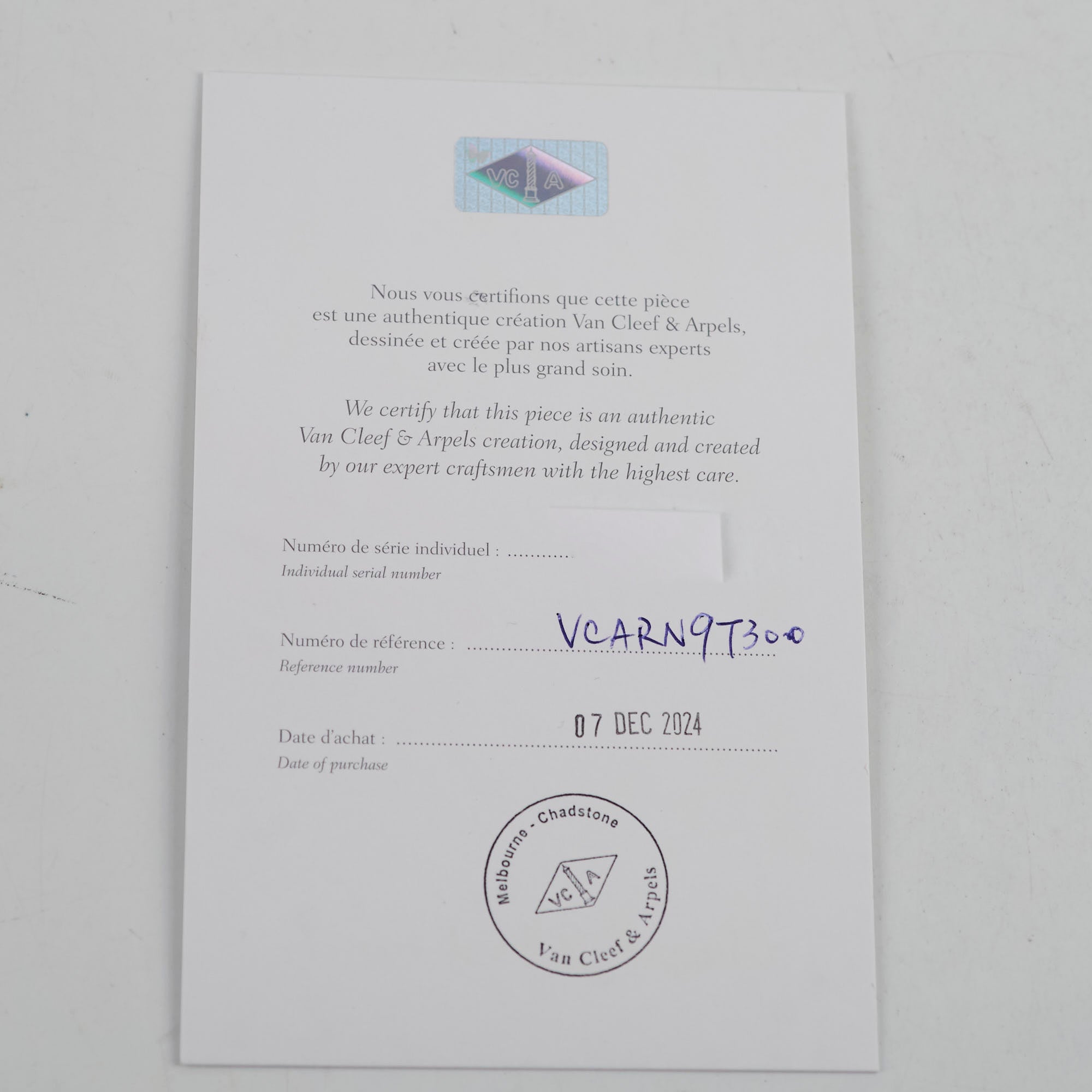 Receipt (Photocopy), Inner Box, Outer Box, Authenticity Certificate