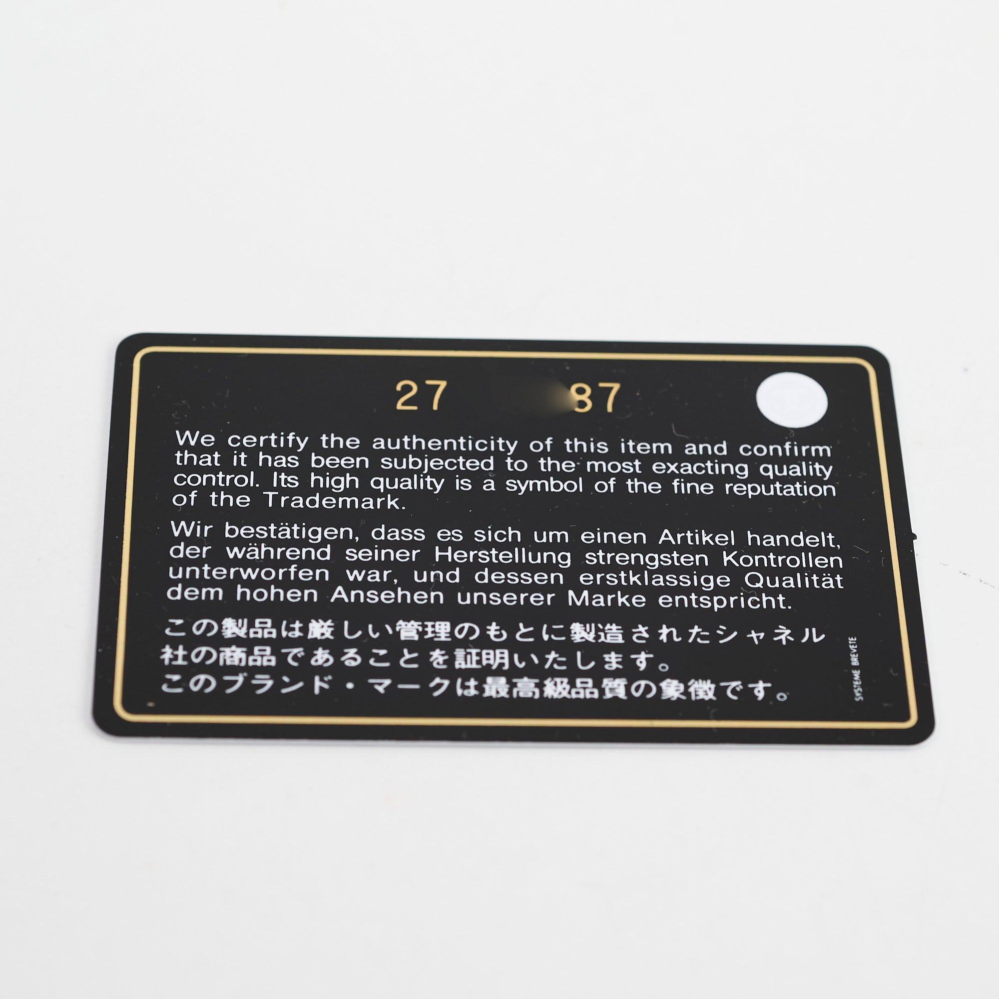 Authenticity Card