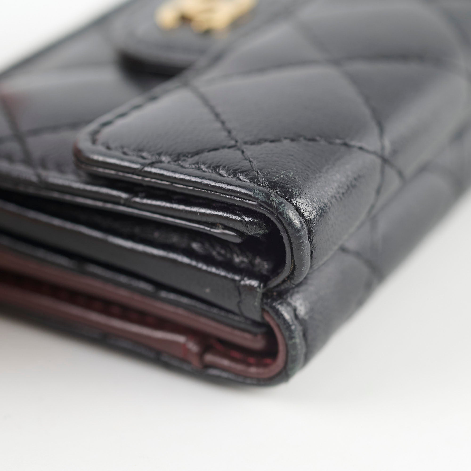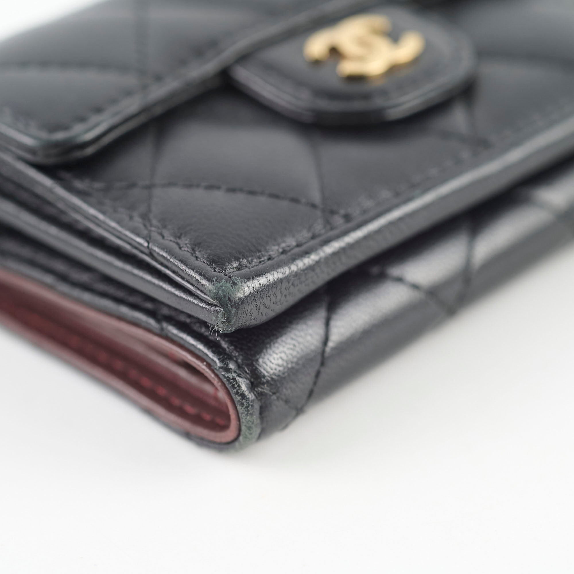 Light hairline scratches on hardware, light indent on interior (unavoidable), light rubbing on corner