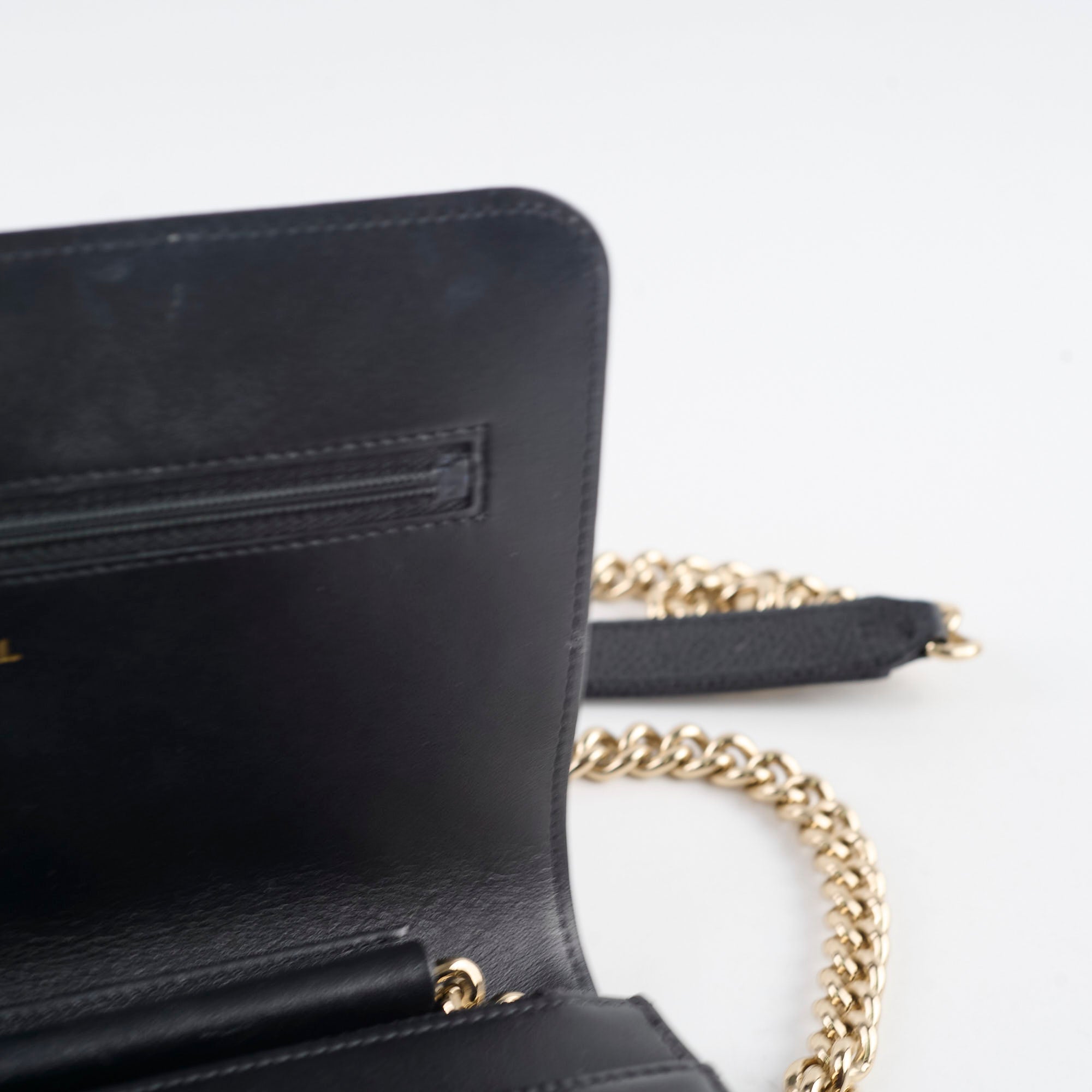 Minor indent under the flap from zipper (unavoidable), slight soften base, corners free from rubbing, clean interior