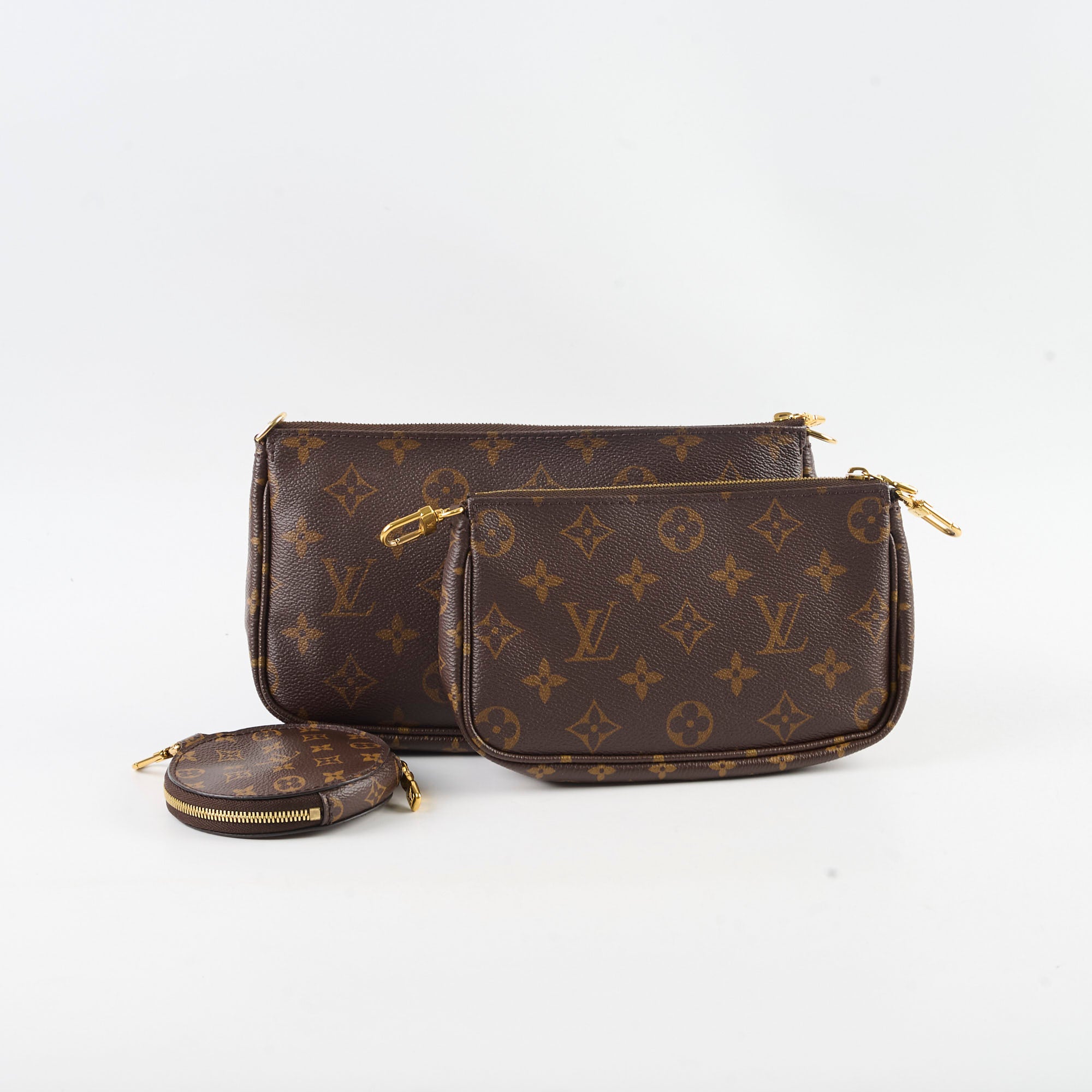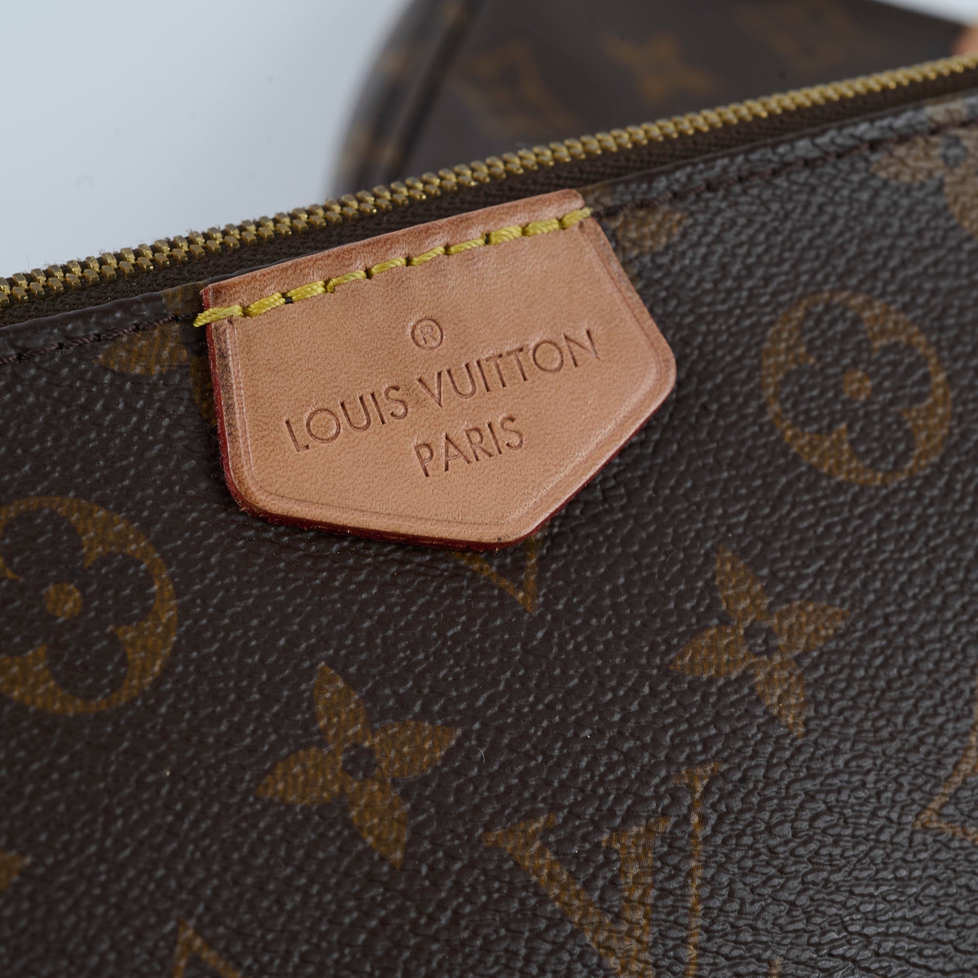 Darkening on vachetta, light hairline scratches and rubbing on hardware, light marks on interior coin pouch
