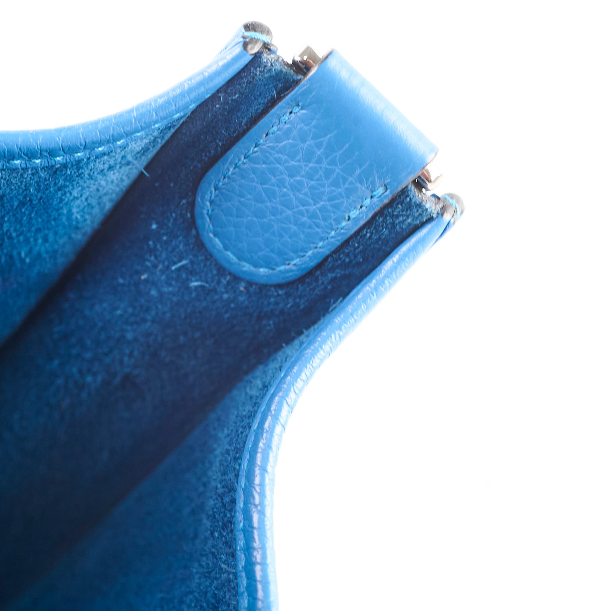Dark marks on handle attachment, light rubbing on back corners, leather and structure in excellent condition