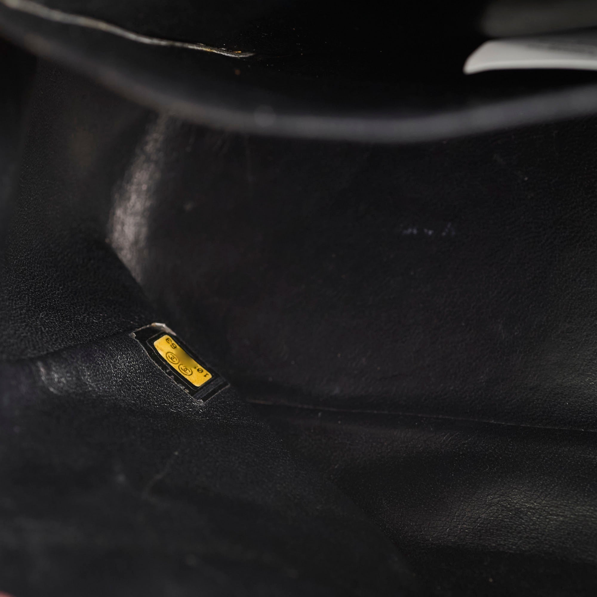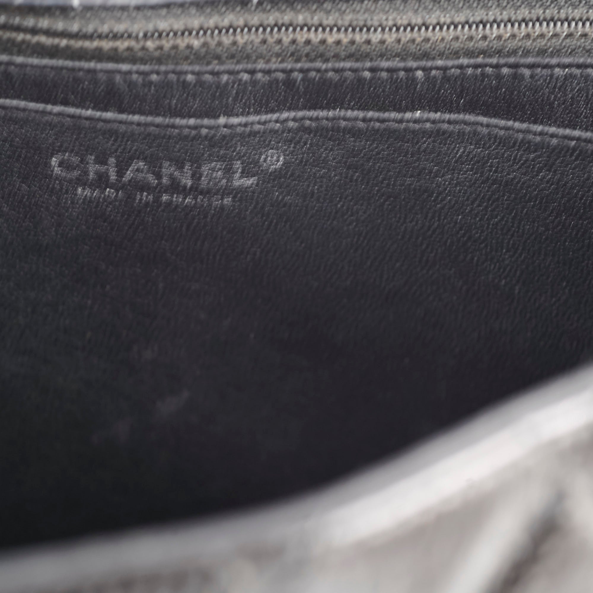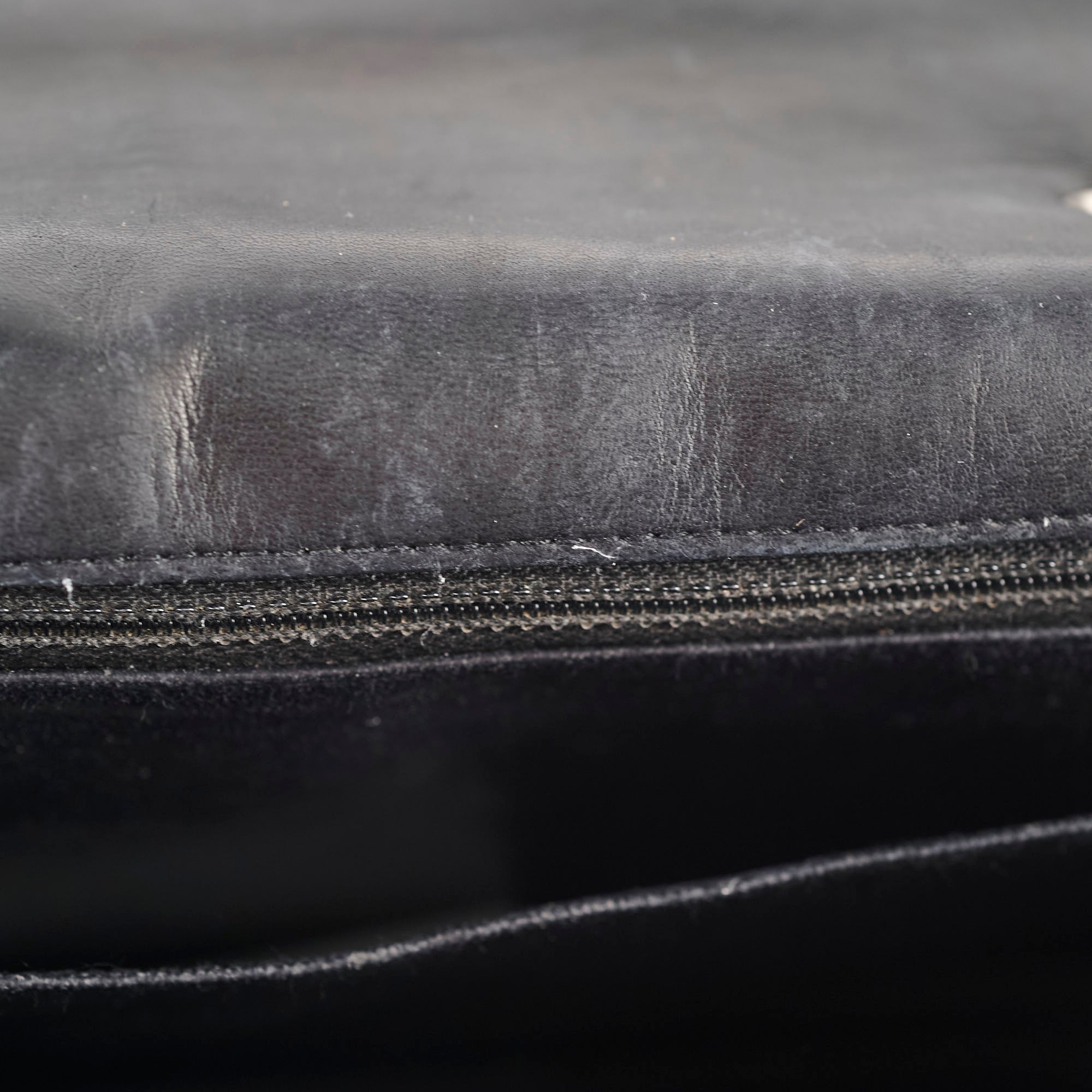 Light hairline scratches on hardware, light rubbing on corner, light nail marks under flap, minor peel on interior base