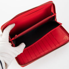 Rubbing on the big wallet corners, faint hairline scratches on the hardware, a little wear in the interior, structure intact
