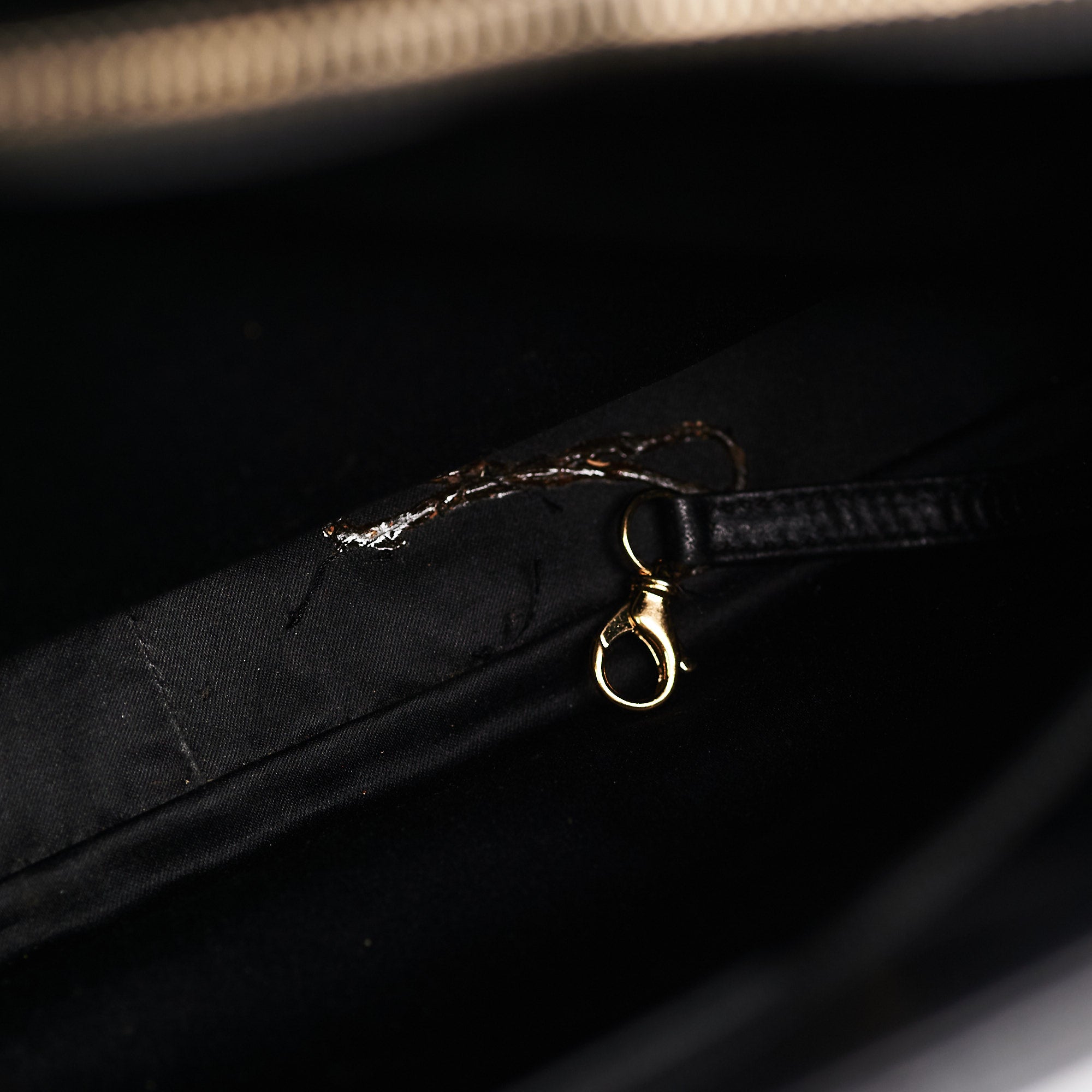 Light signs of wear throughout, light hairline scratches and tarnishing on hardware, light rubbing on corners and piping, lost of structure on bag, stains on interior lining