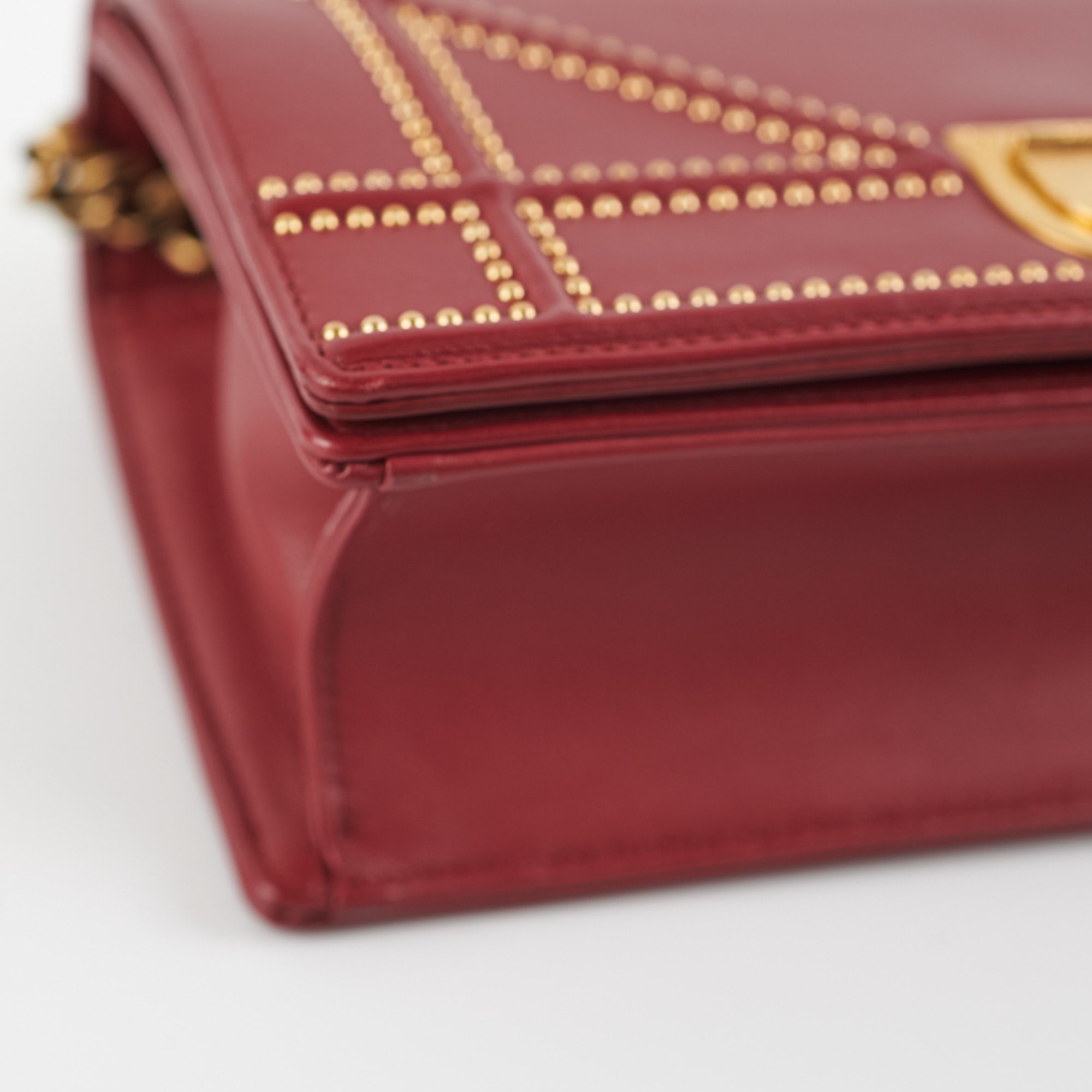 Light hairline scratches on hardware, light nail marks under opening flap, front and back, light rubbing around inner edges