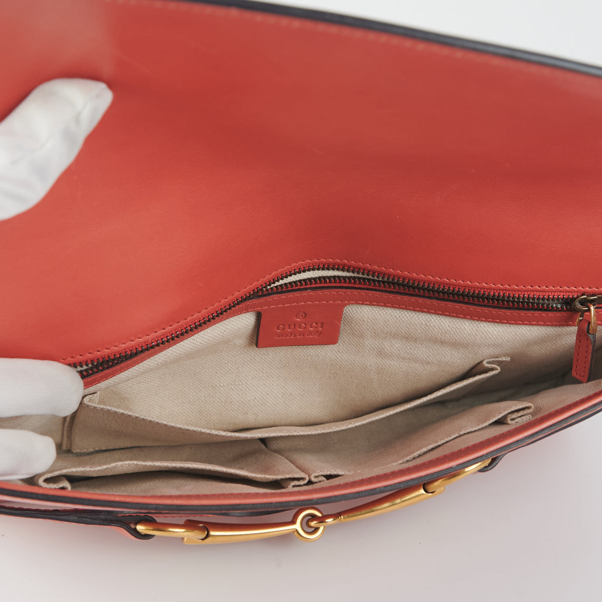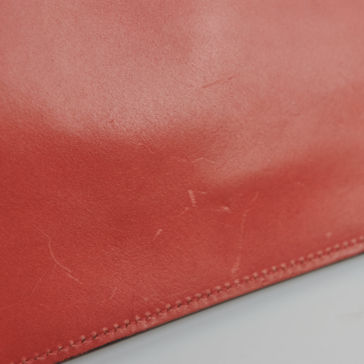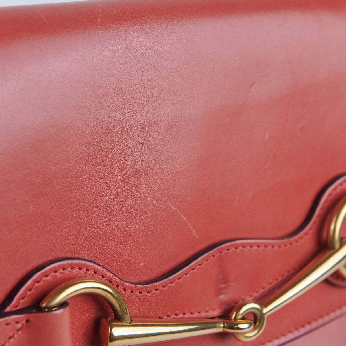 Nail marks/scratches throughout, corner rubbings, dent under the horsebit metal area, shiny hardware, clean interior