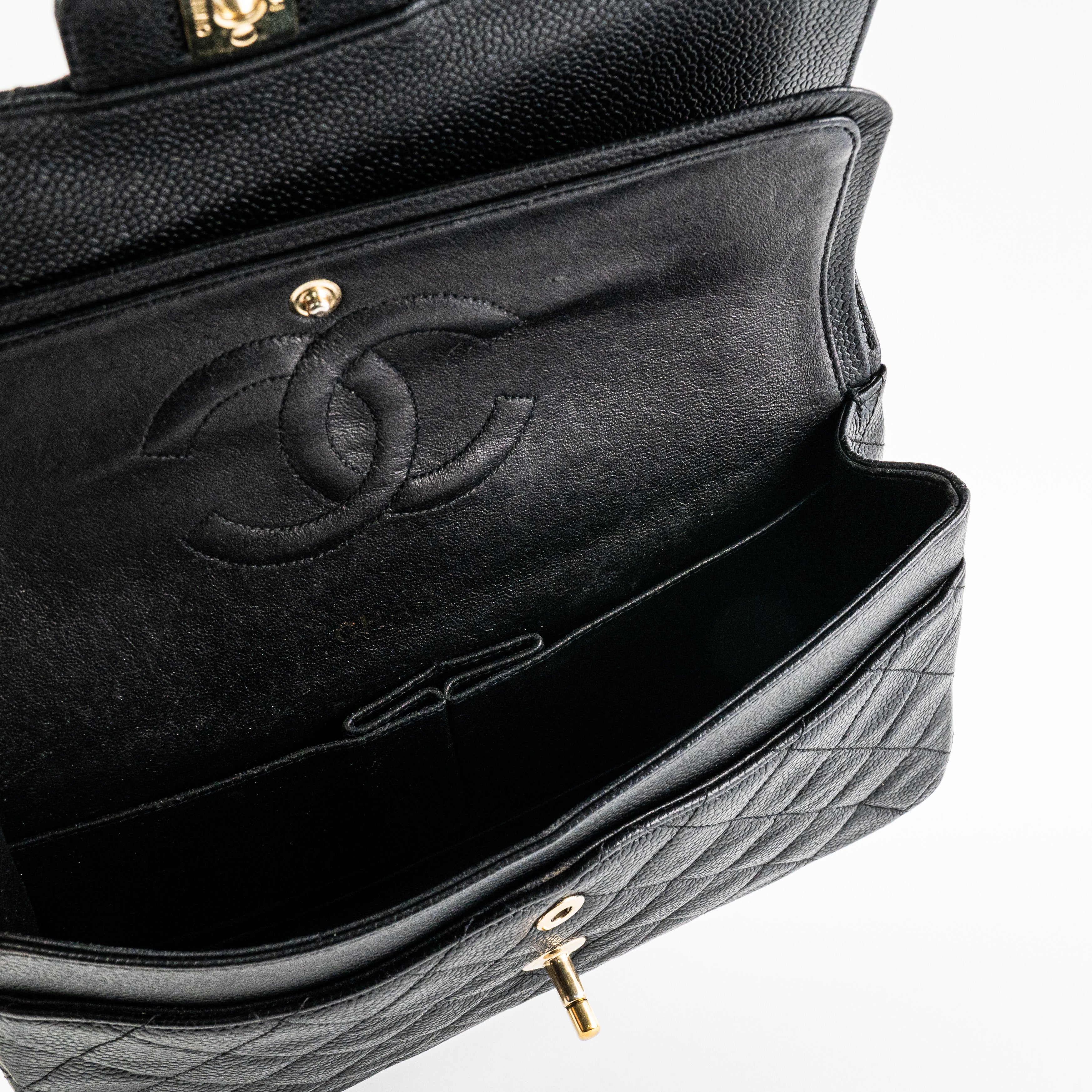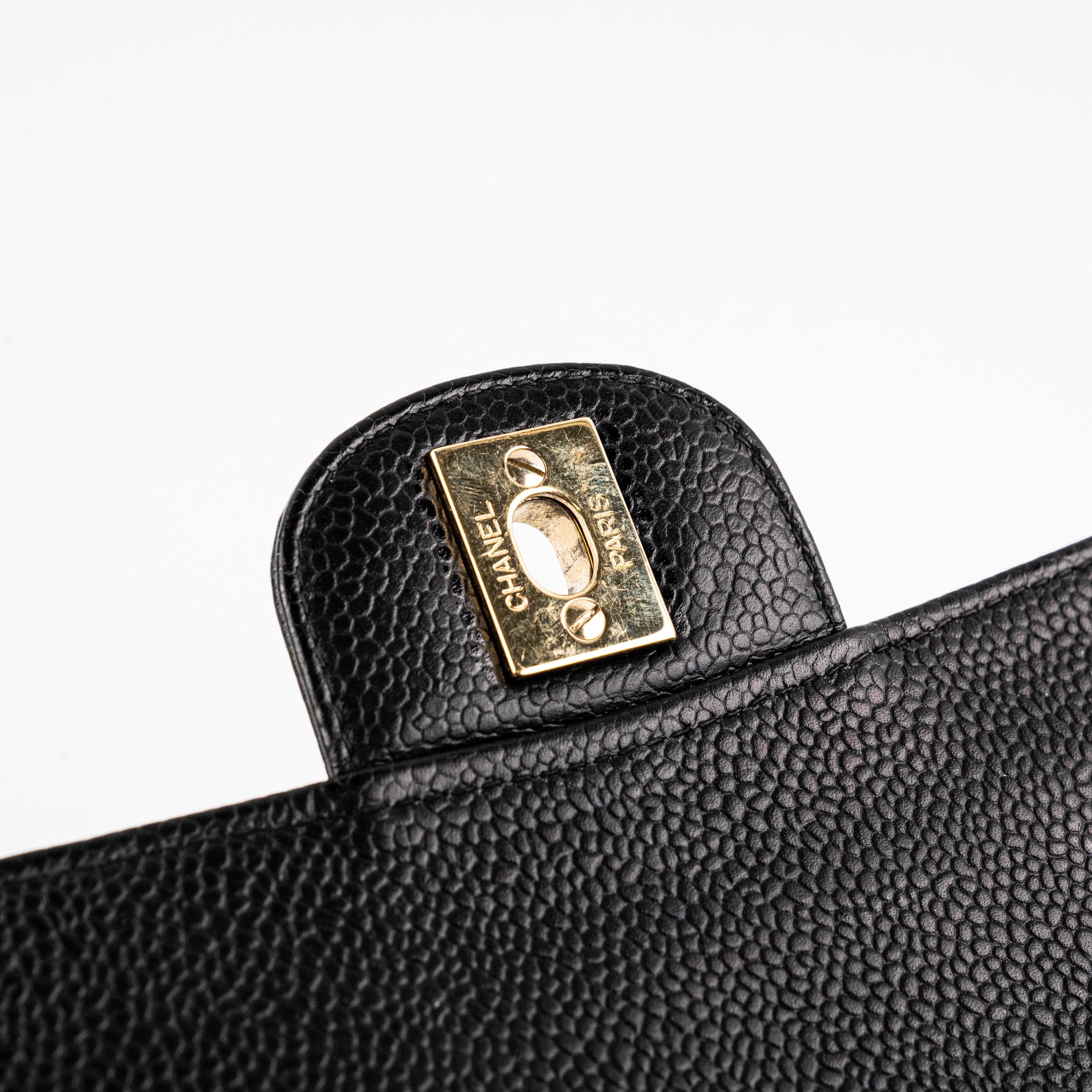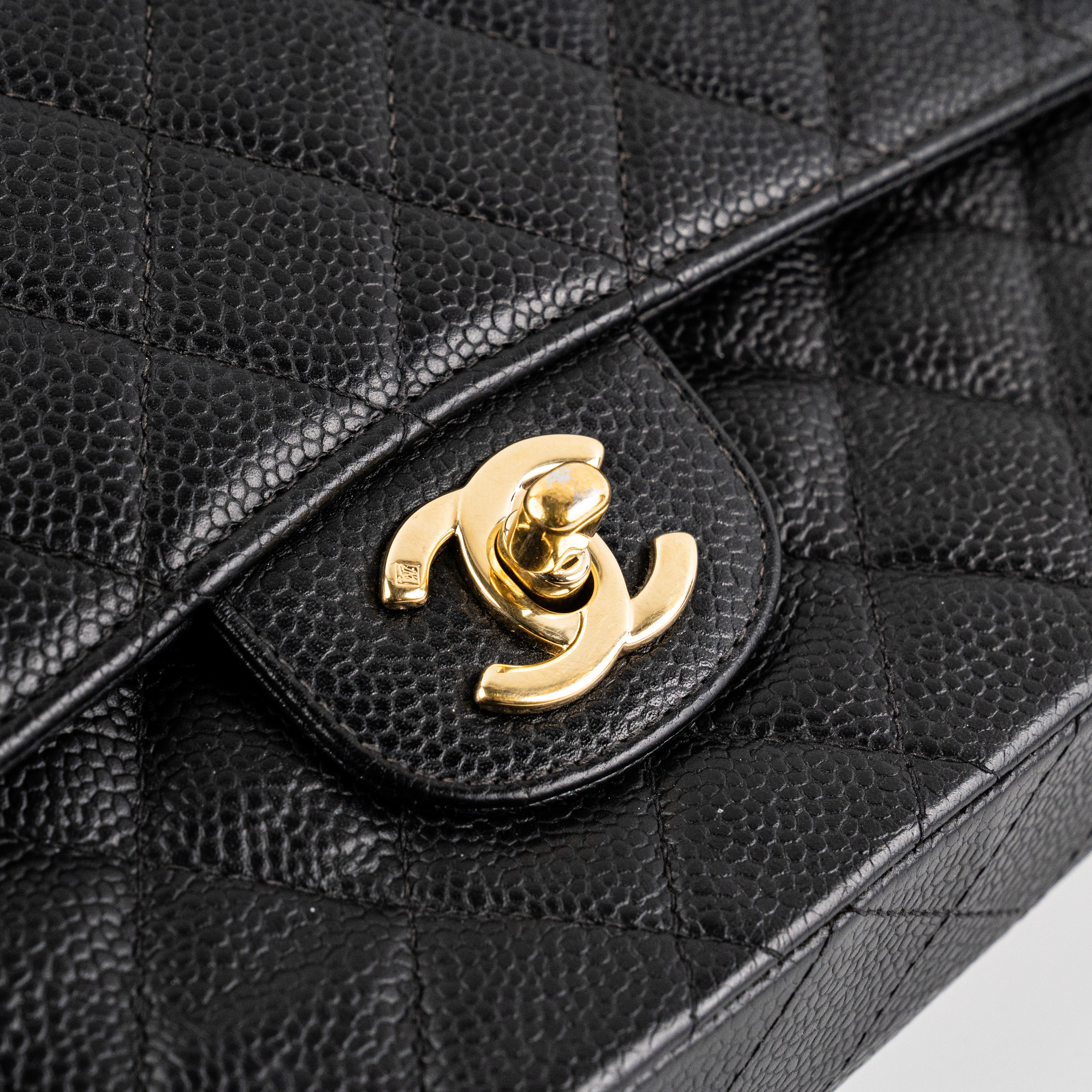 Light creases at the front, tarnishing on hardware CC, crease at the back, nail marks under flap, logo and serial number have fainted