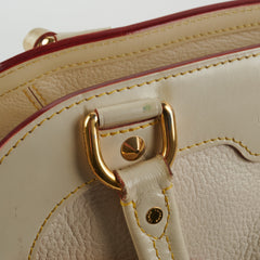 Rubbing/scuffing on corners, small marks and scuff on the leather, light marks on the interior, wear on the base of the handles